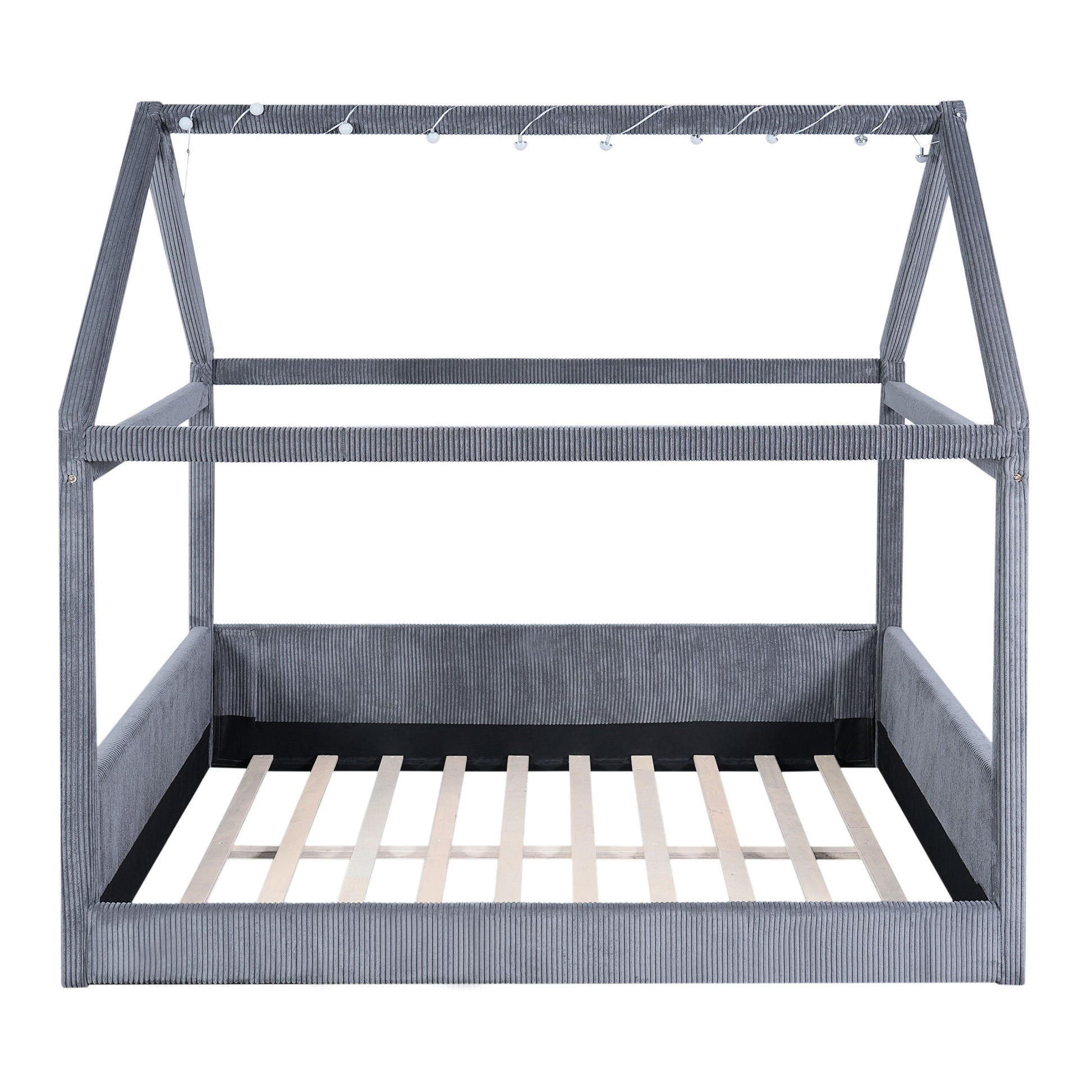 Full Size Upholstered House Style Daybed With LED Light Strips - Gray