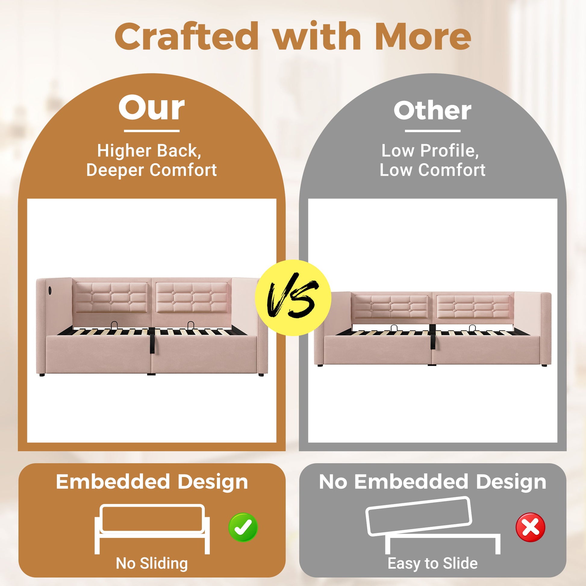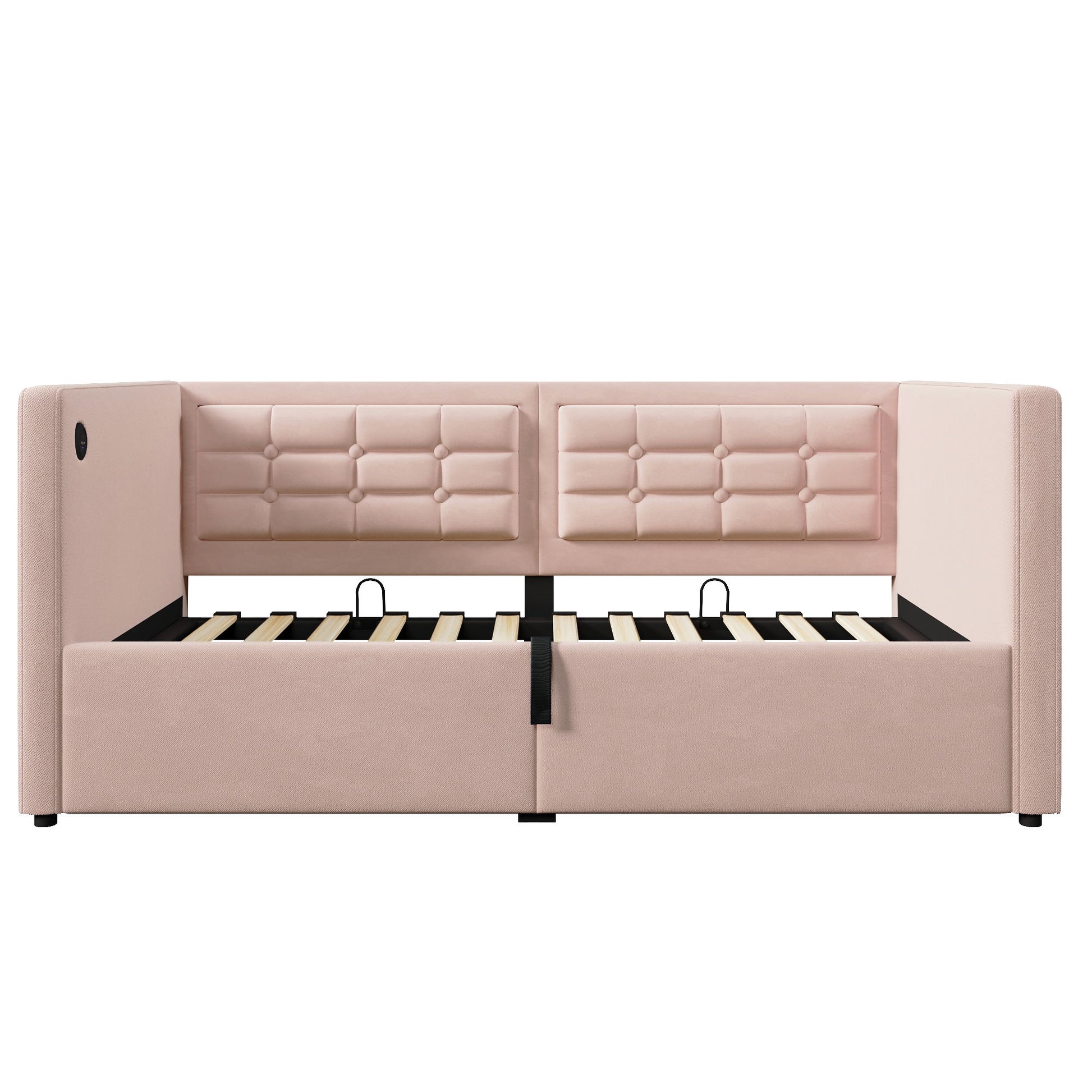 Twin Size Upholstered Hydraulic Storage Daybed With USB & Type C Charging - Pink