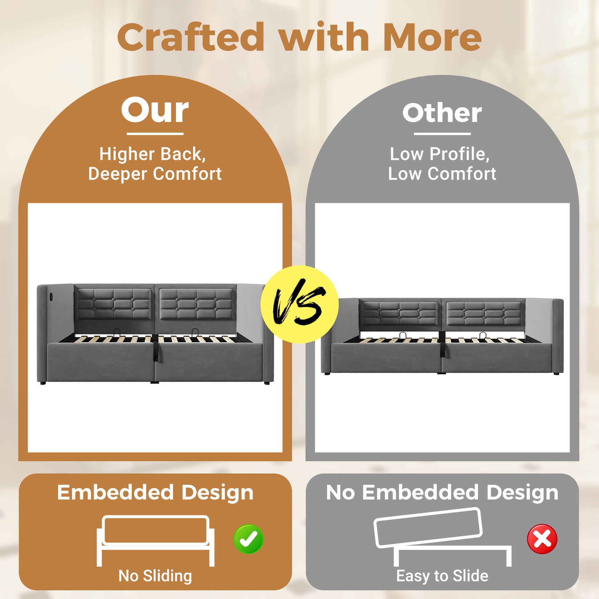 Upholstered Hydraulic Storage Daybed With USB & Type C Charging