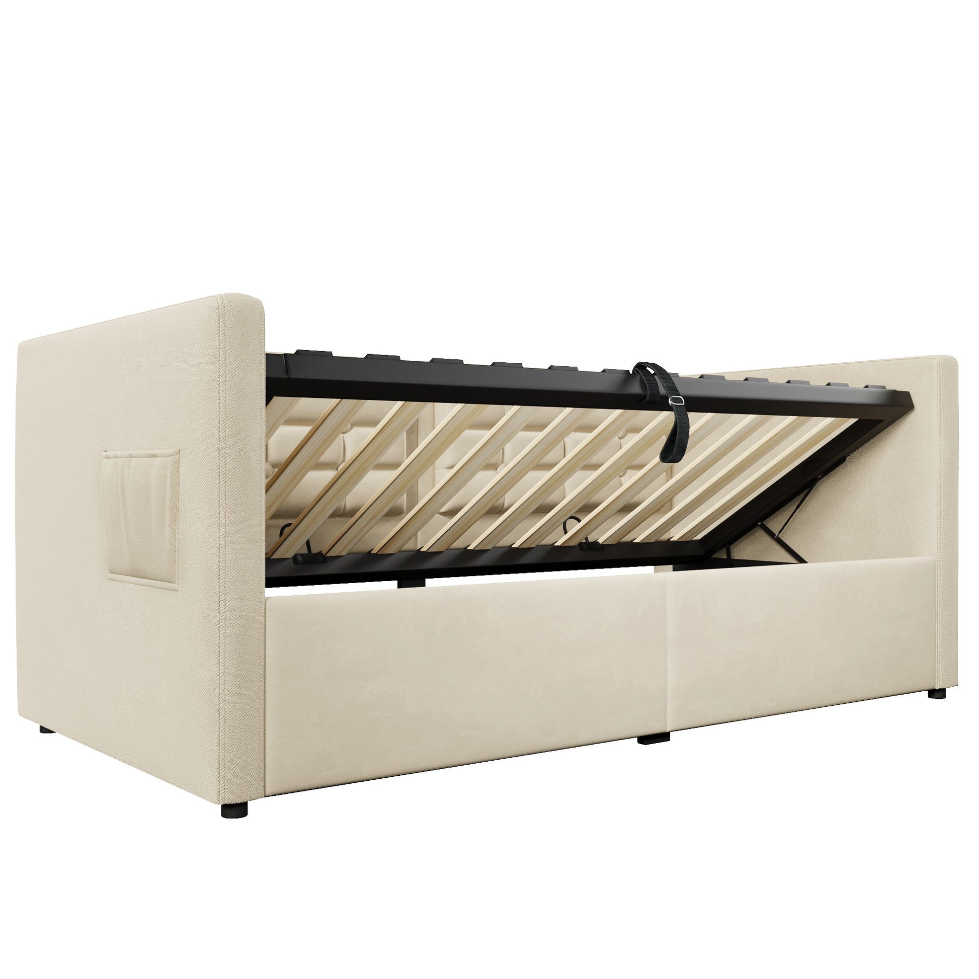 Twin Size Upholstered Hydraulic Storage Daybed With USB & Type C Charging - Beige