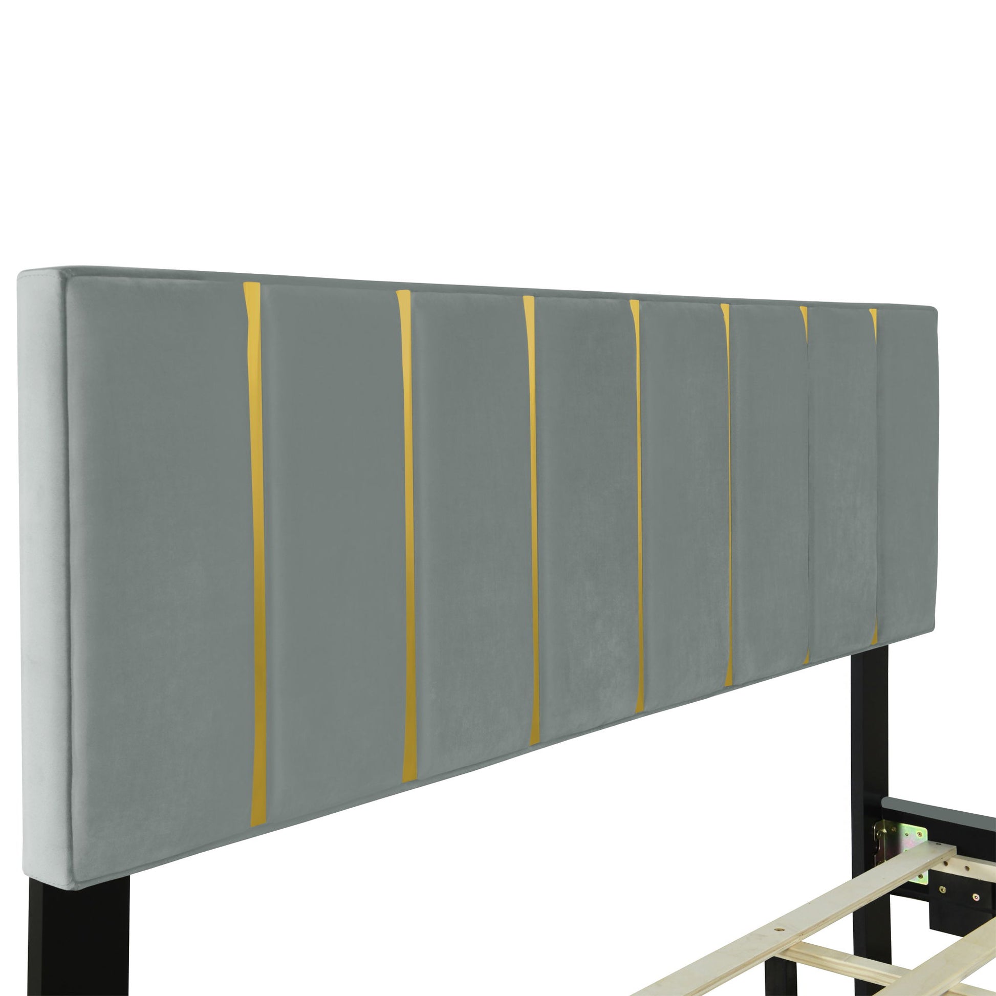 Stunning Design: This bed features a luxurious gold metal trim on plush velvet upholstery, enhancing any bedroom decor with its opulent design that complements a variety of styles effortlessly.