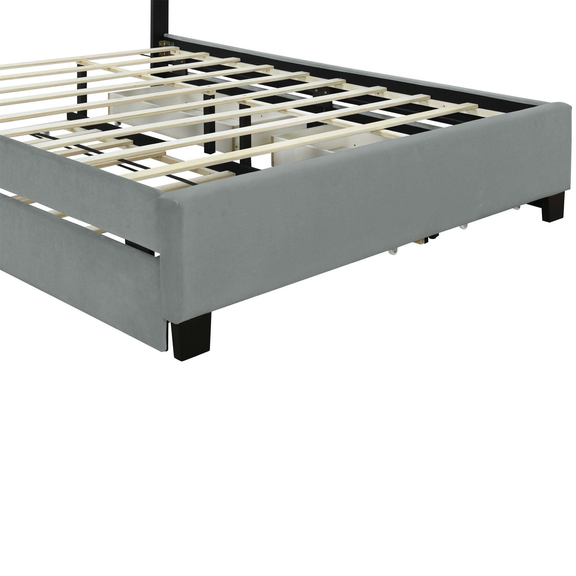 Versatile Functionality: Ideal for guest rooms or shared spaces, the bed includes a trundle for additional sleeping space and integrated drawers that offer ample storage for linens and essentials.
