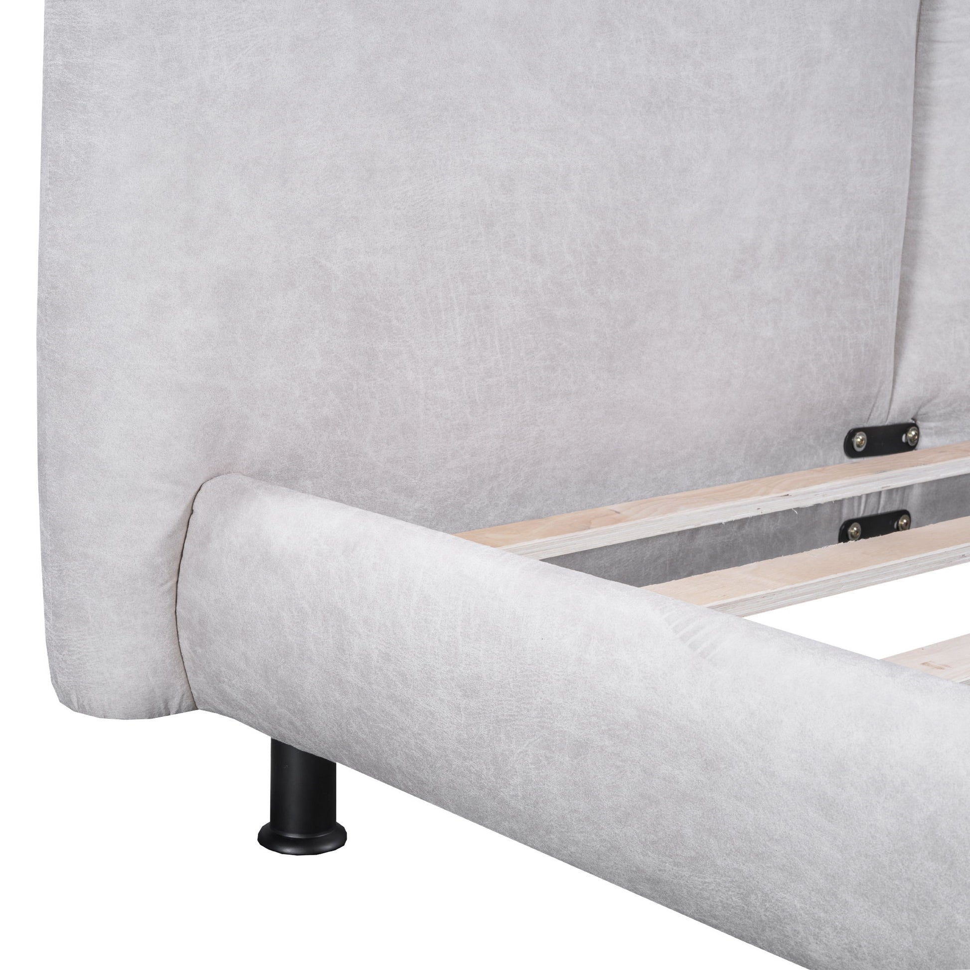 Queen Size Upholstered Platform Bed With 2 Large Headrests And Thick - Gray