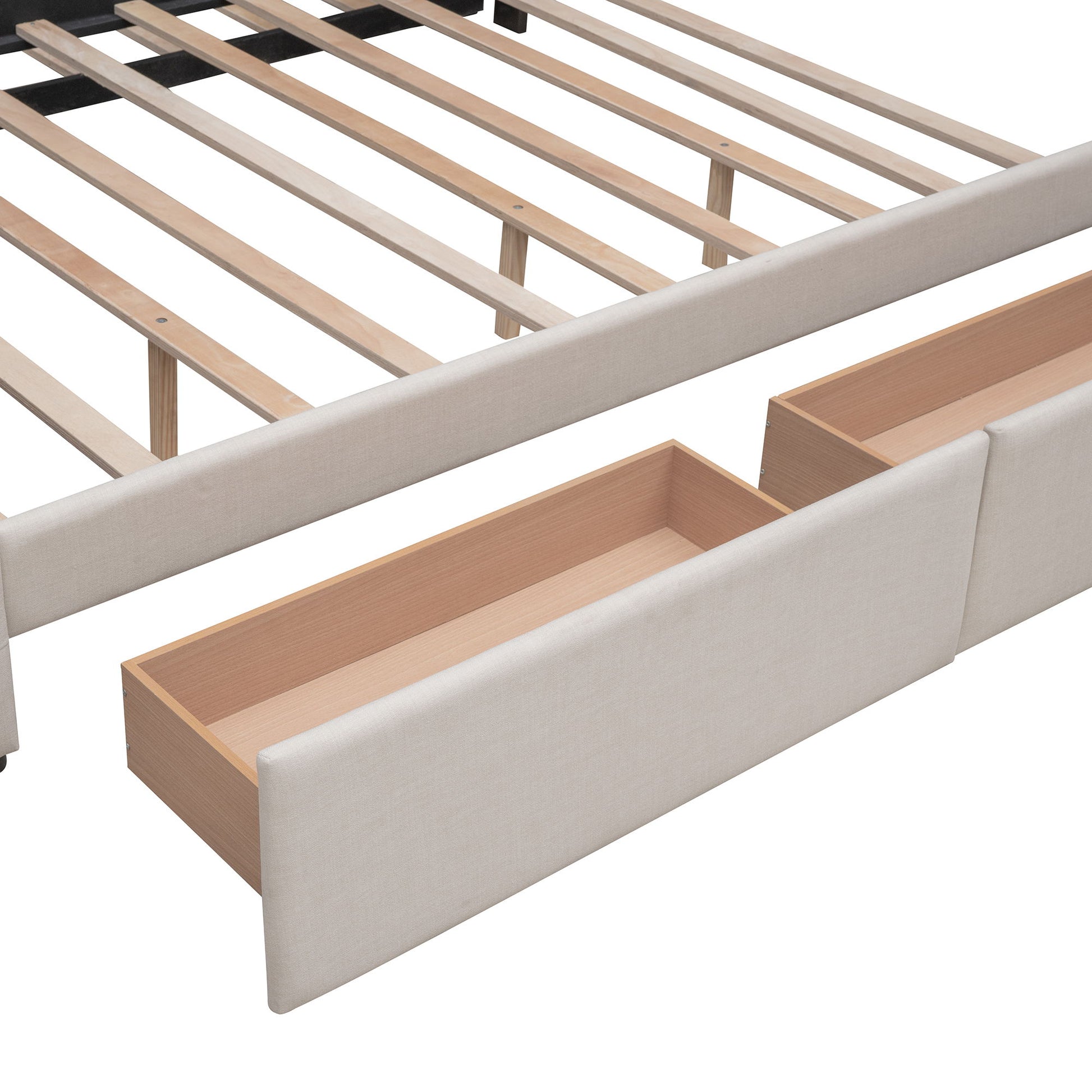 Queen Size Upholstered Platform Bed With Classic Headboard And 4 Drawers, No Box Spring Needed - Beige