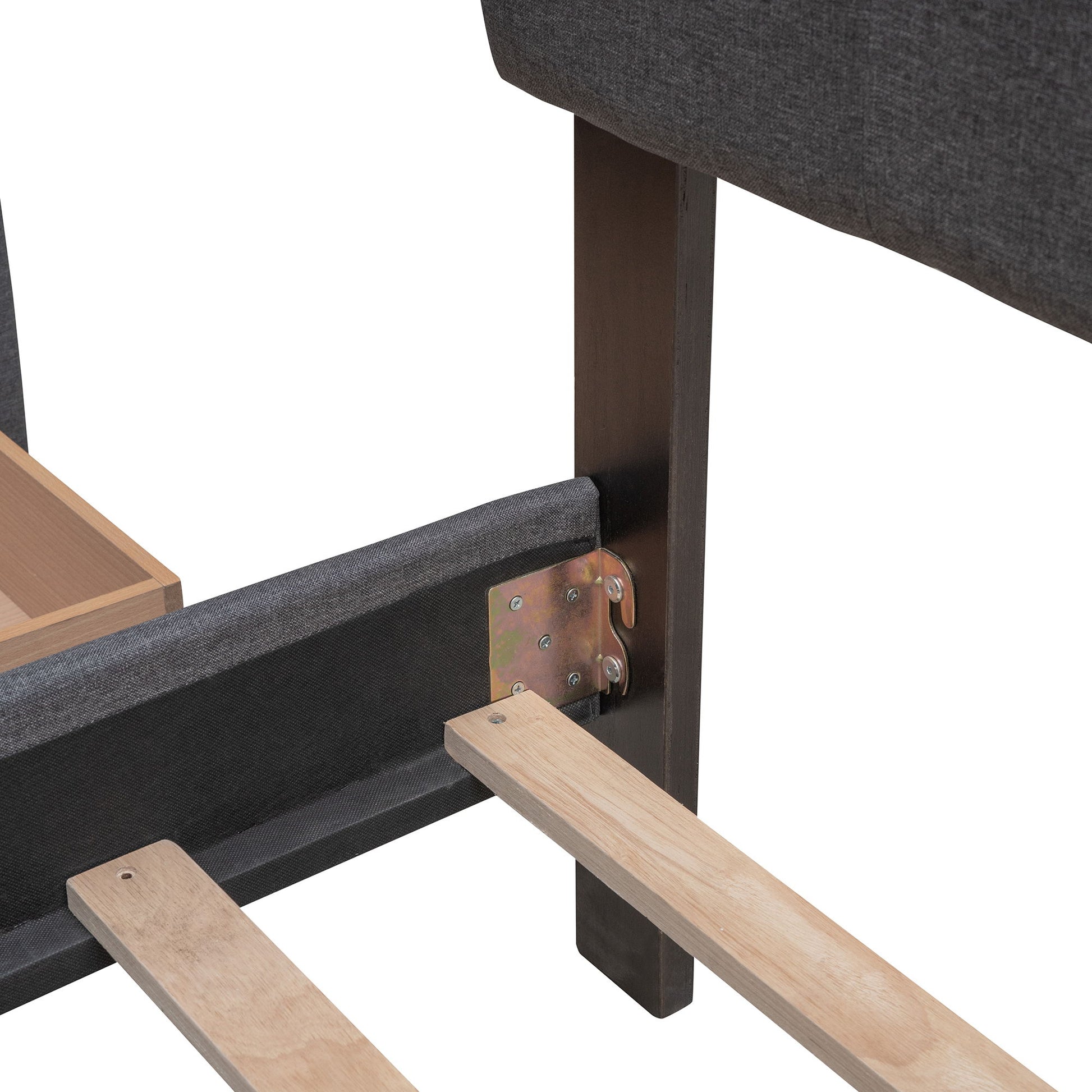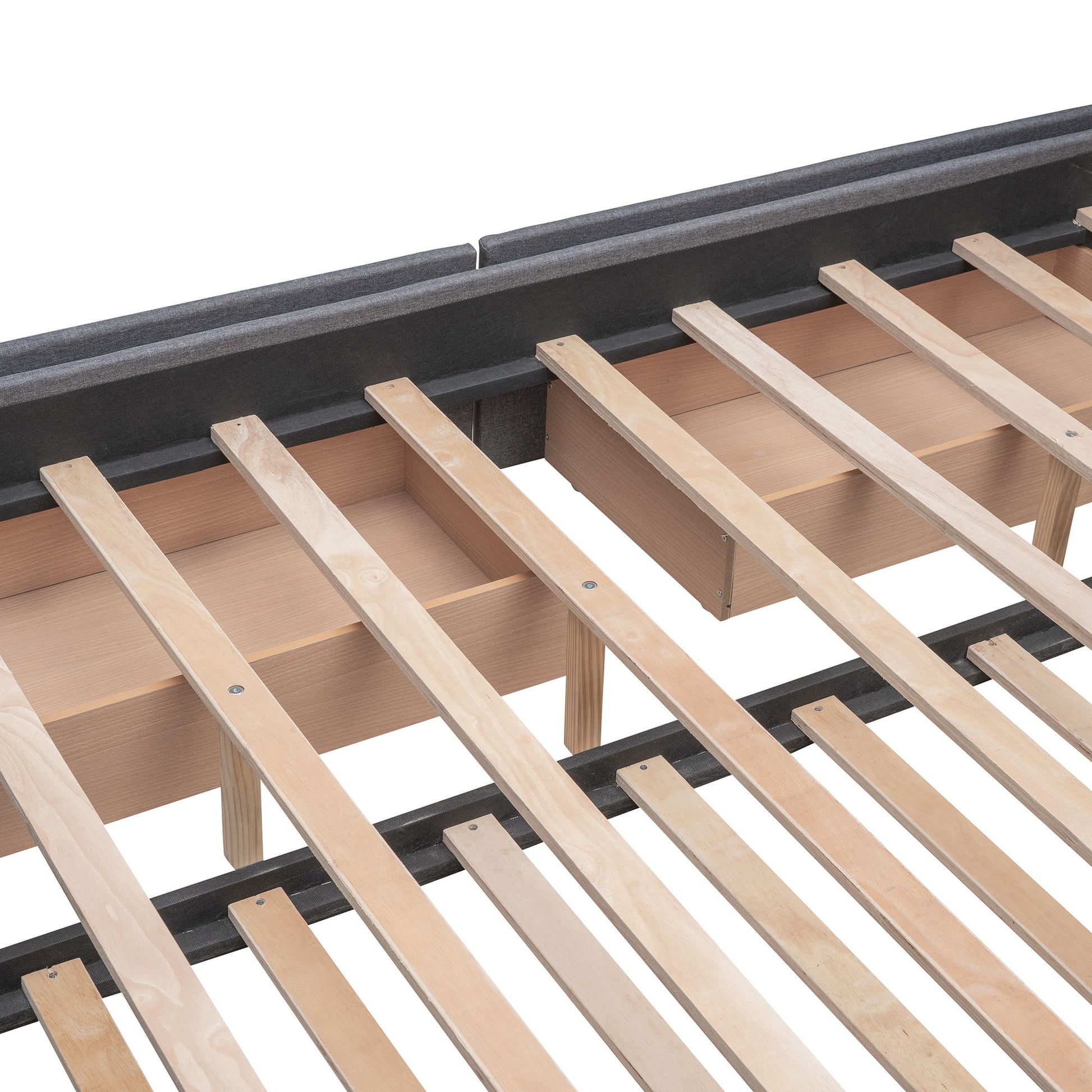 Queen Size Upholstered Platform Bed With 2 Drawers And 1 Twin Long Trundle - Dark Gray