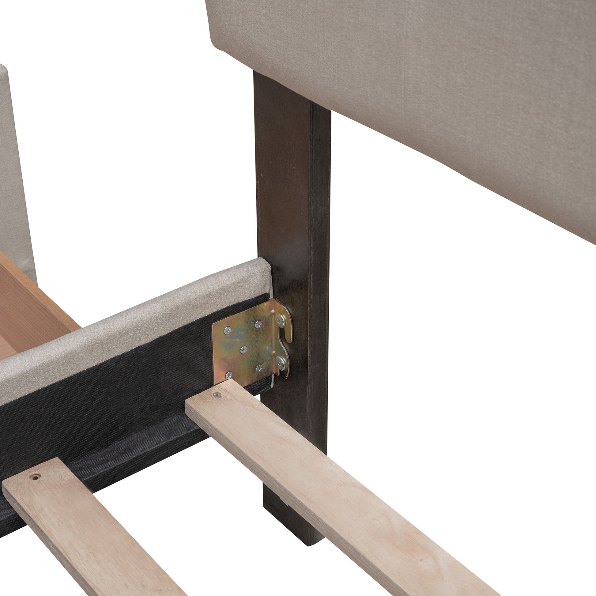 Queen Size Upholstered Platform Bed With 2 Drawers And 1 Twin Long Trundle - Dark Beige