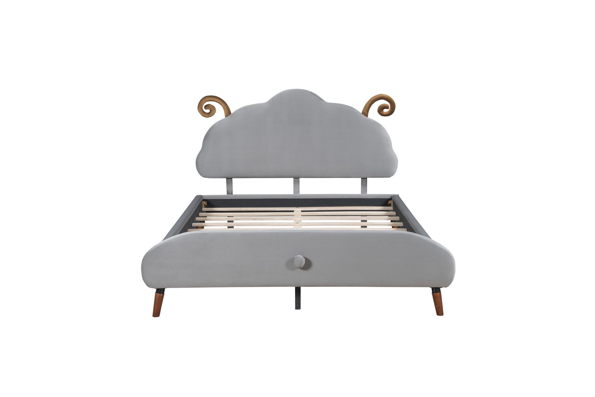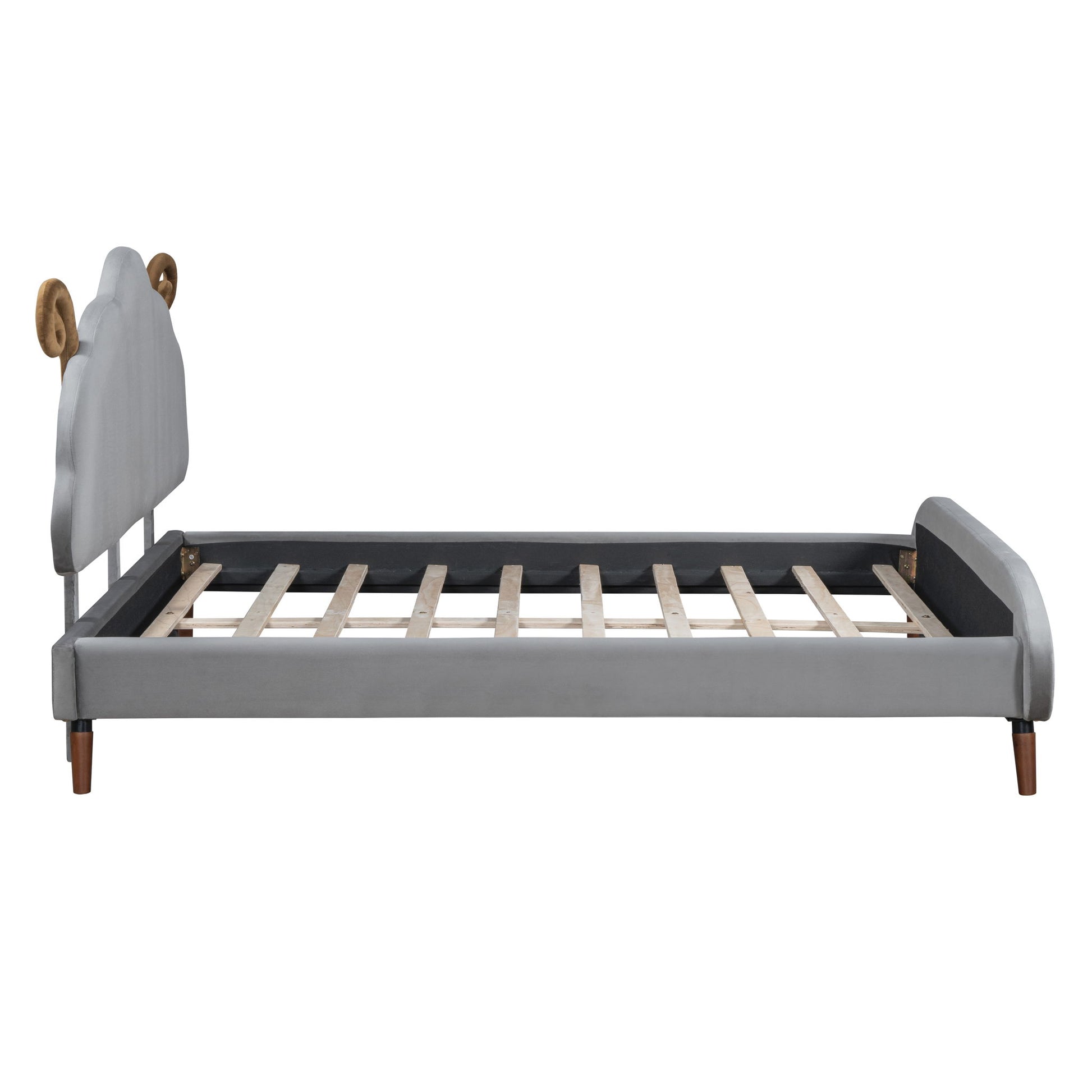 Full Size Upholstered Platform Bed With Sheep Shaped Headboard - Gray