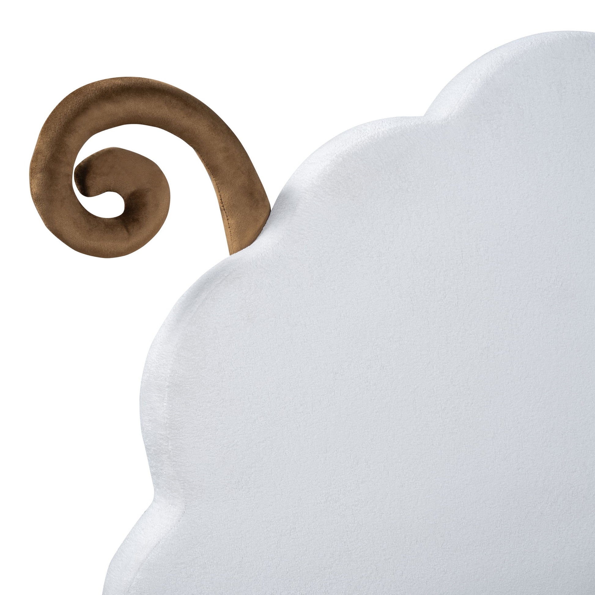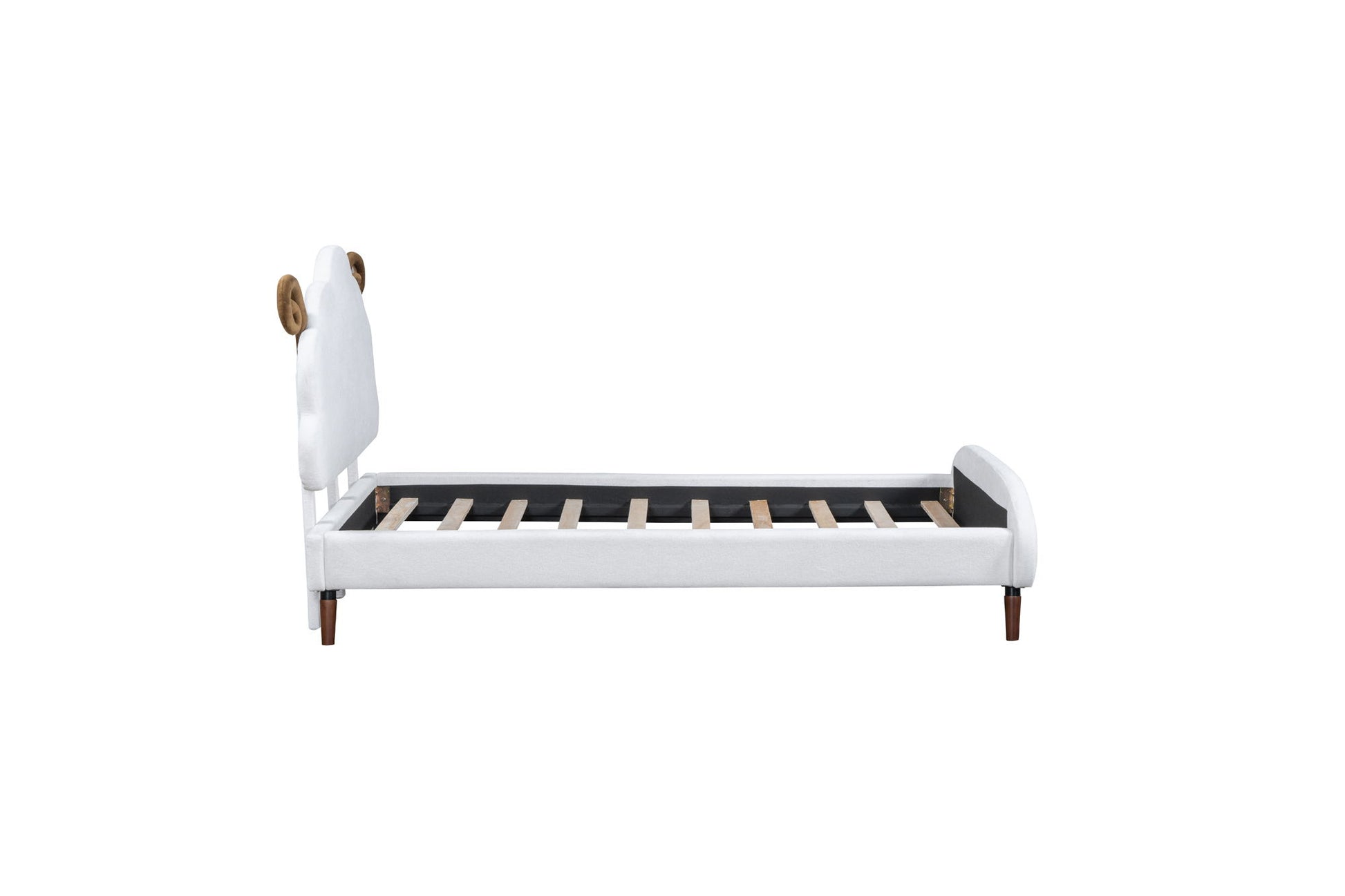 Twin Size Upholstered Platform Bed With Sheep Shaped Headboard - White