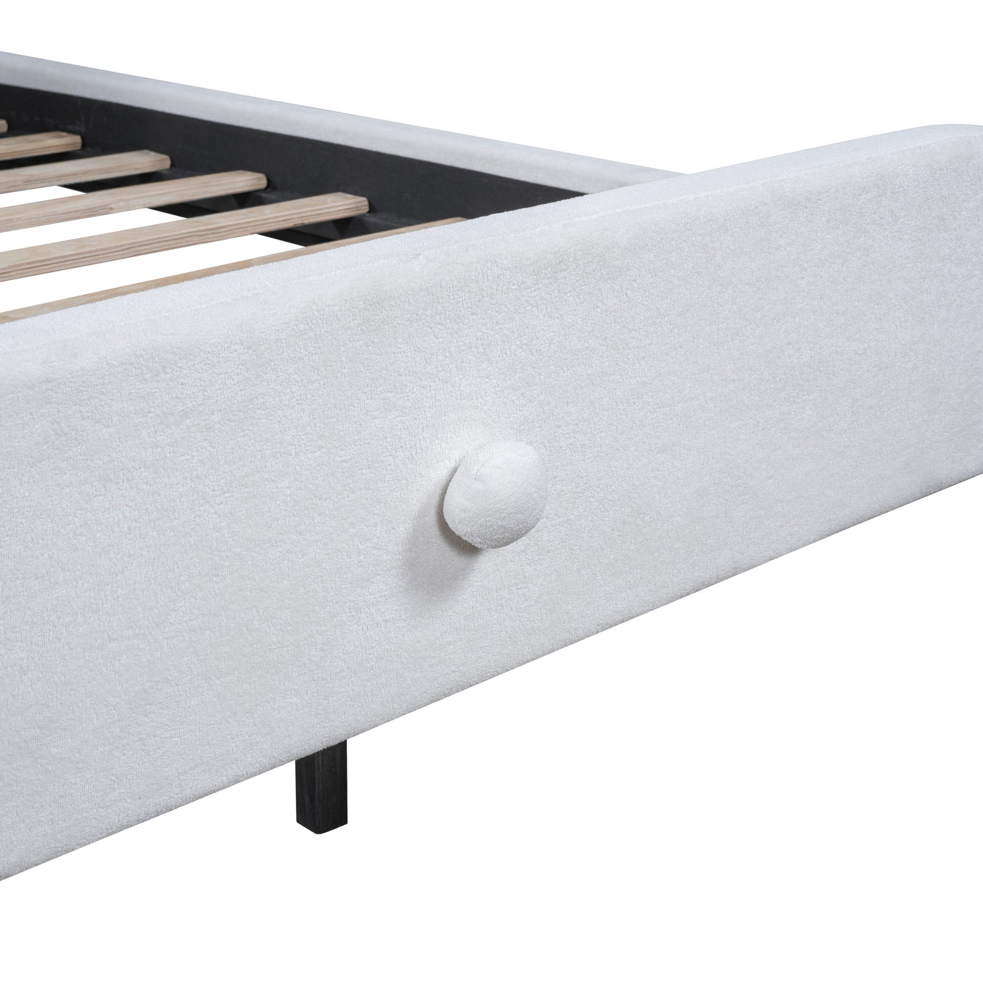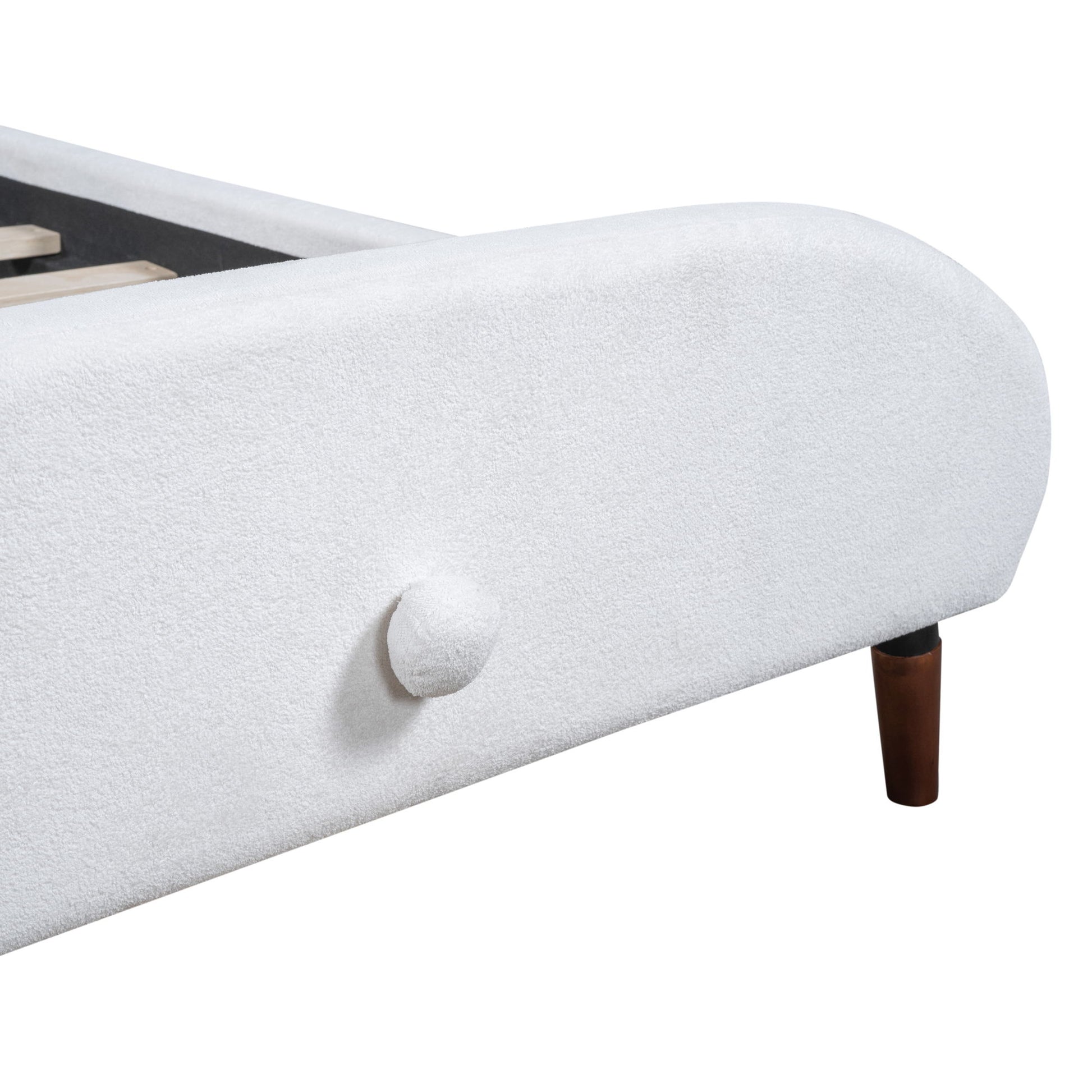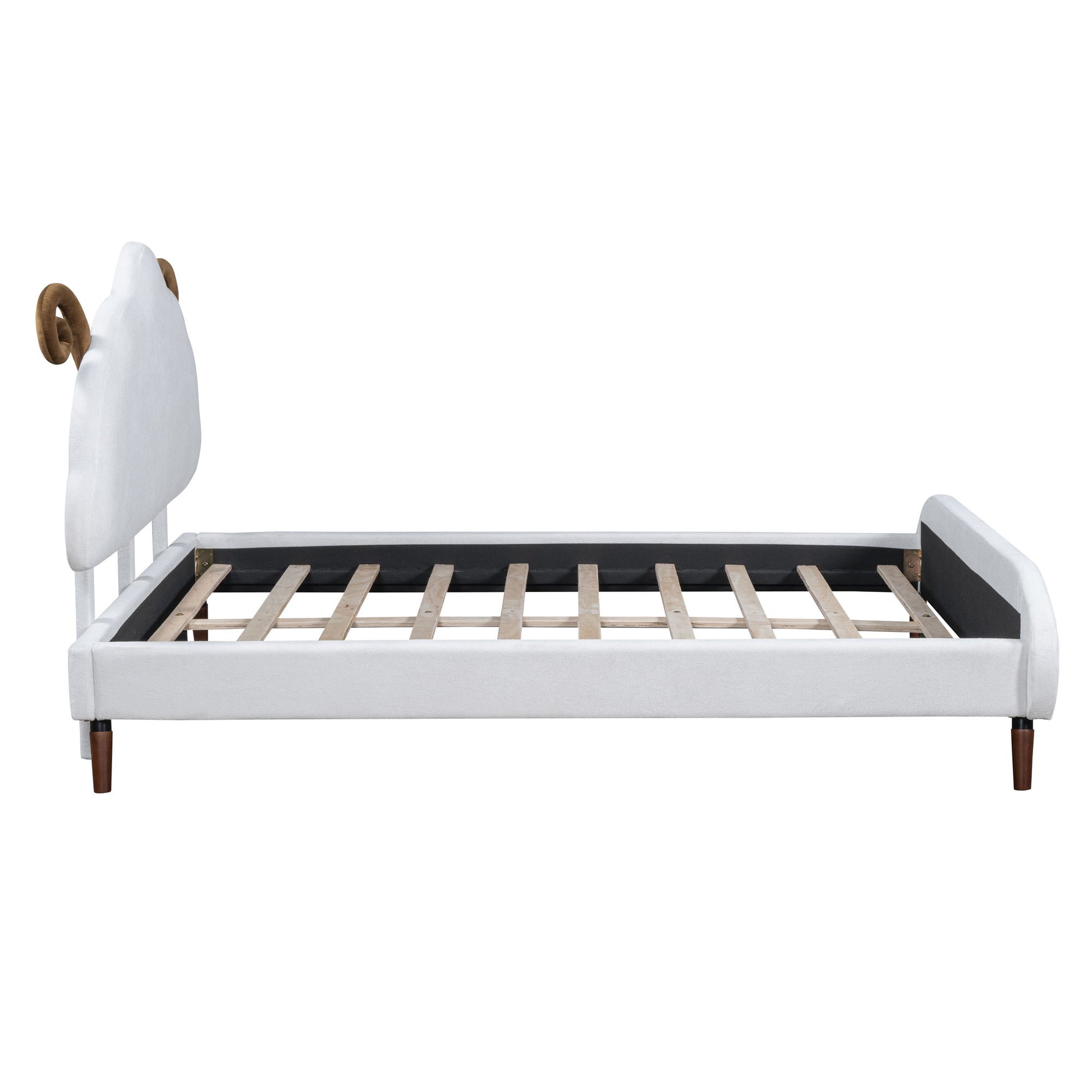 Full Size Upholstered Platform Bed With Sheep Shaped Headboard - White