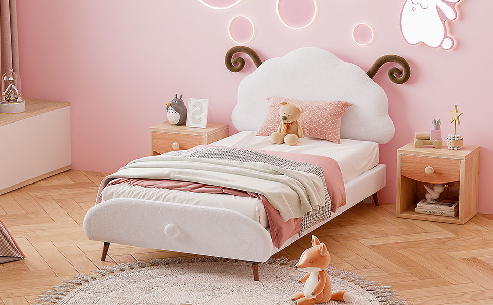 Transform your bedroom with this charming platform bed featuring adorable sheep horn accents. Designed to delight both children and adults, it combines playful aesthetics with premium comfort and durability.