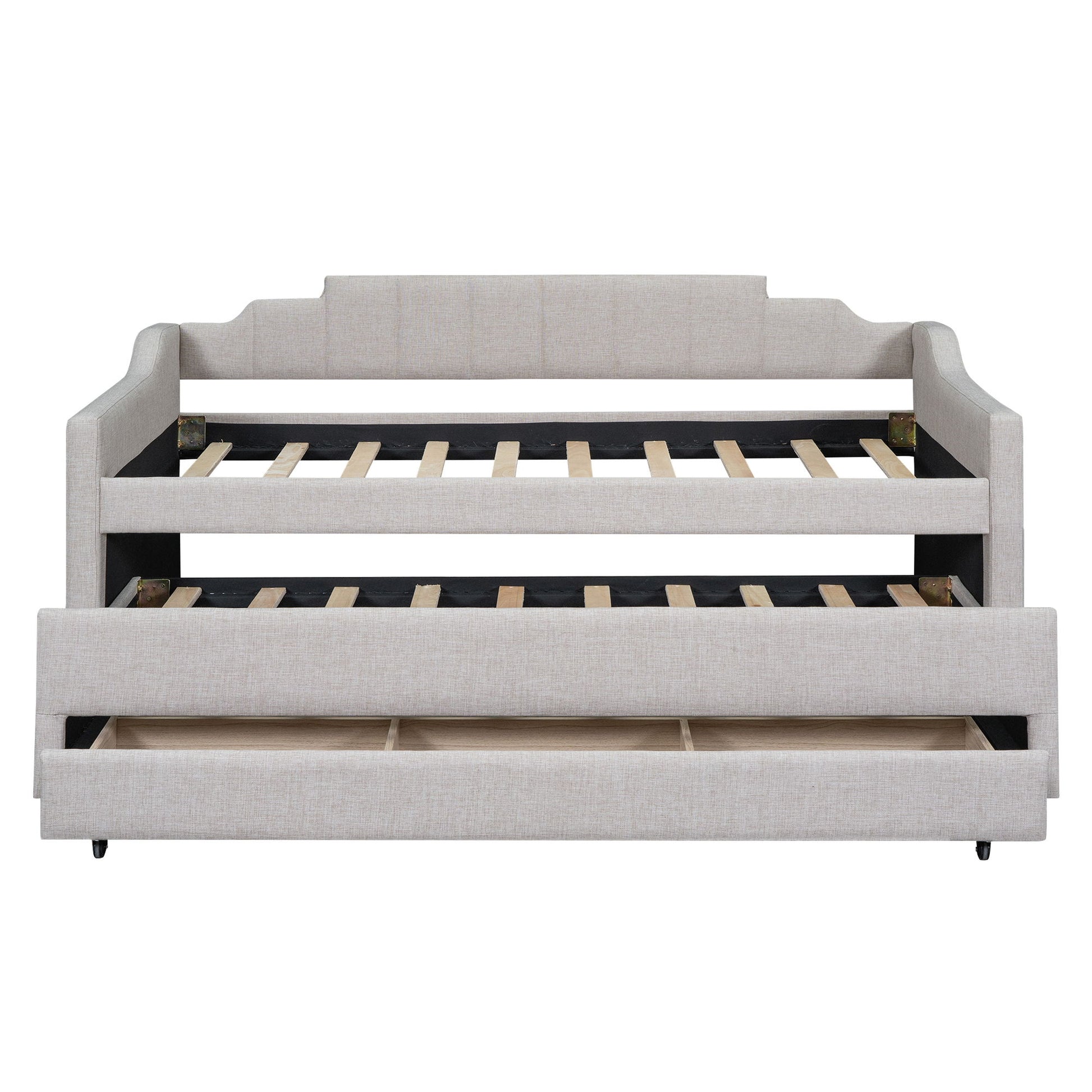 Twin Size Upholstered Daybed With Trundle And 3 Drawers - Beige
