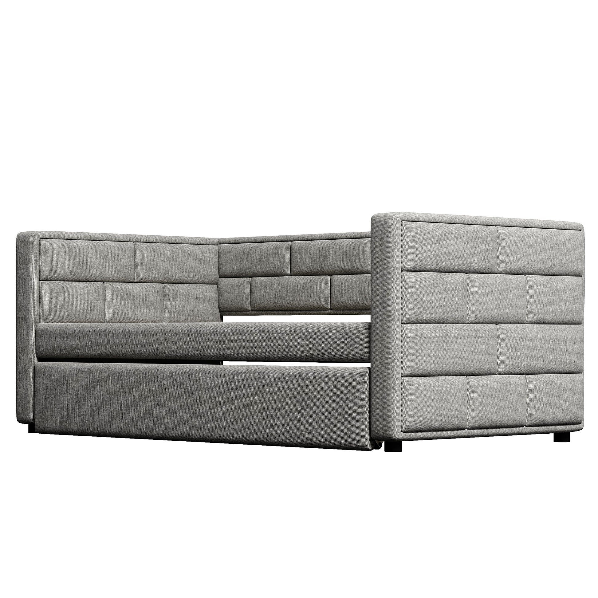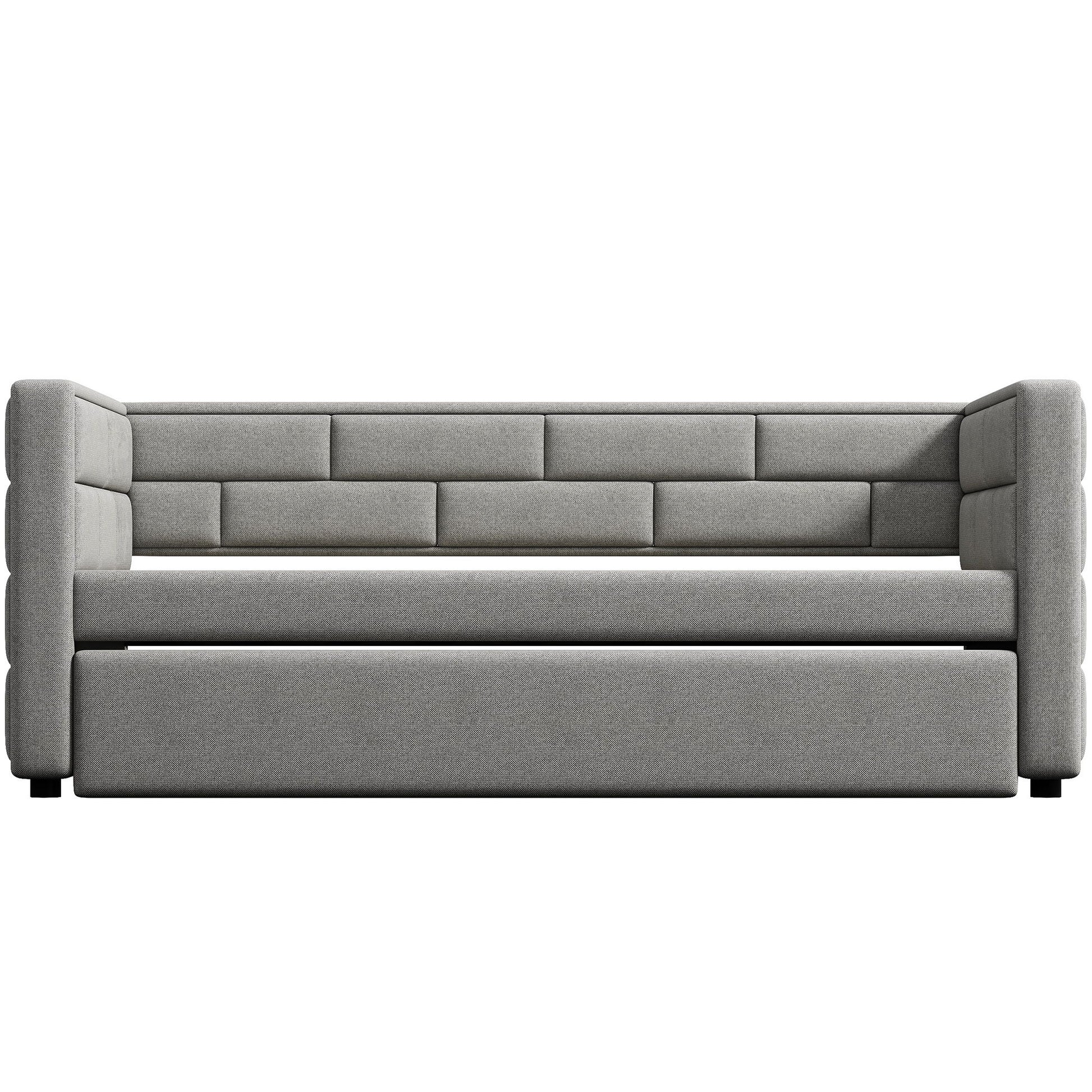Upholstered Twin Size Daybed With Trundle, Padded Back And Sides - Gray