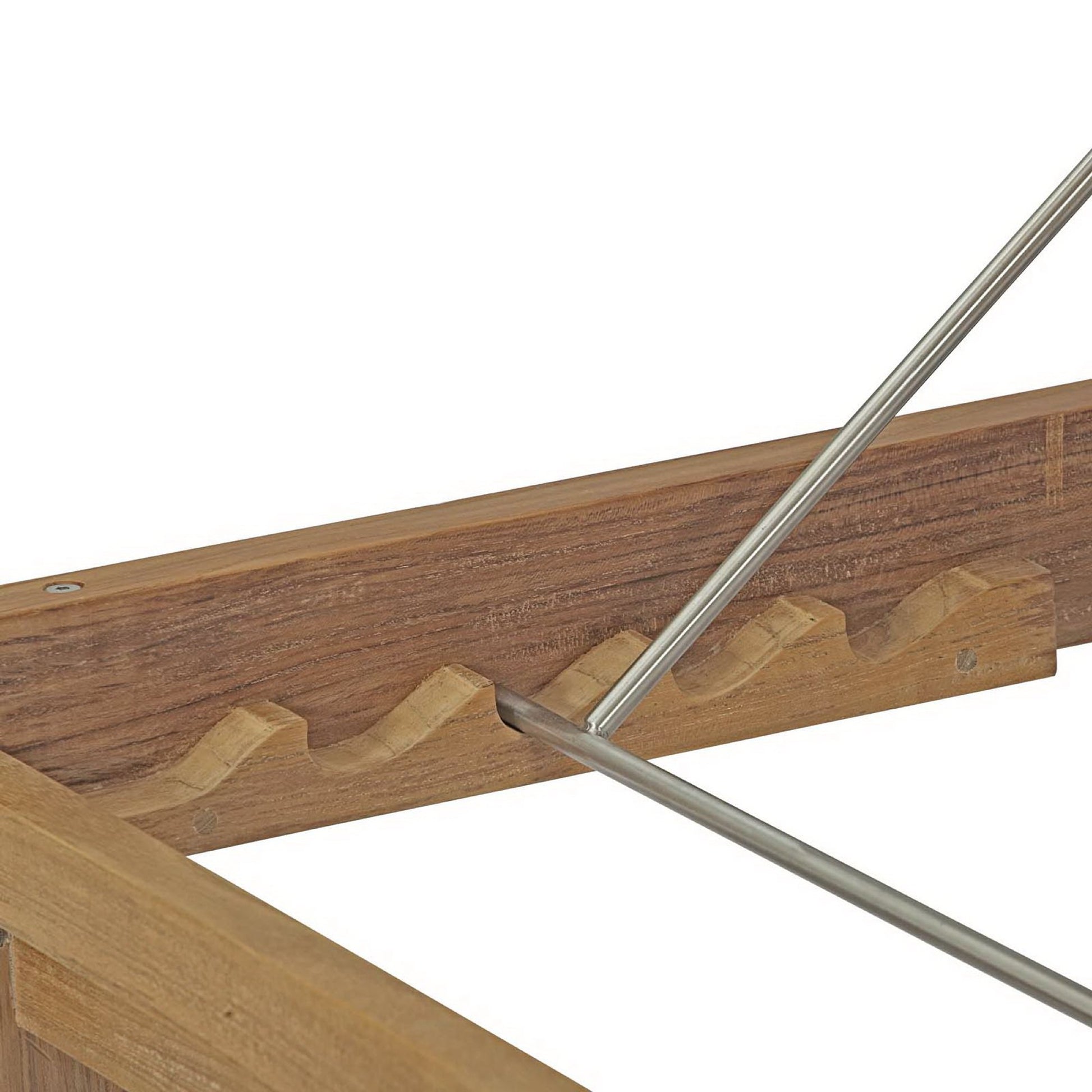 Refresh your outdoor d�cor with the Upland Teak Wood Outdoor Patio Furniture Collection. Boldly designed with eye-catching appeal, Upland Patio Chaise Lounge Chair is made of solid teak wood and solidly build construction. The perfect choice for balconies, backyards, patios, gazebos, poolside or garden spaces, choose from matching armchair, sofa, loveseat, ottoman, side table, coffee table, and chaise lounge selections with this multi-purpose modern teak set. Known for its ability to withstand extreme weather conditions, teak is the wood selection of choice for long-lasting outdoor furnishings. Assembly required. This installment of the Upland Teak Wood Outdoor Patio Furniture Series and a patio chaise lounge.