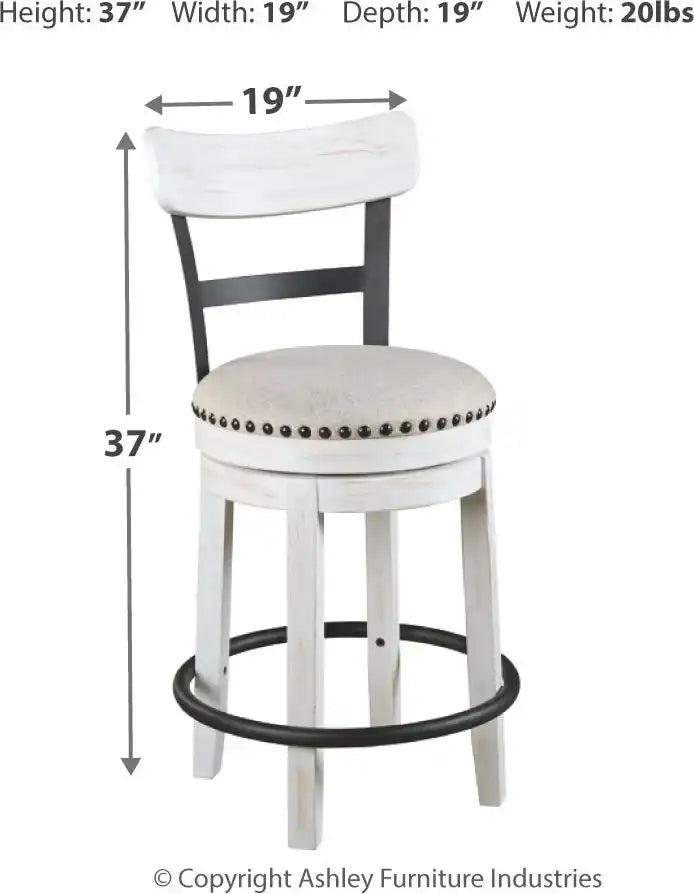 Valebeck - 5 Pc. - Counter Table, 4 Upholstered Barstools - White
