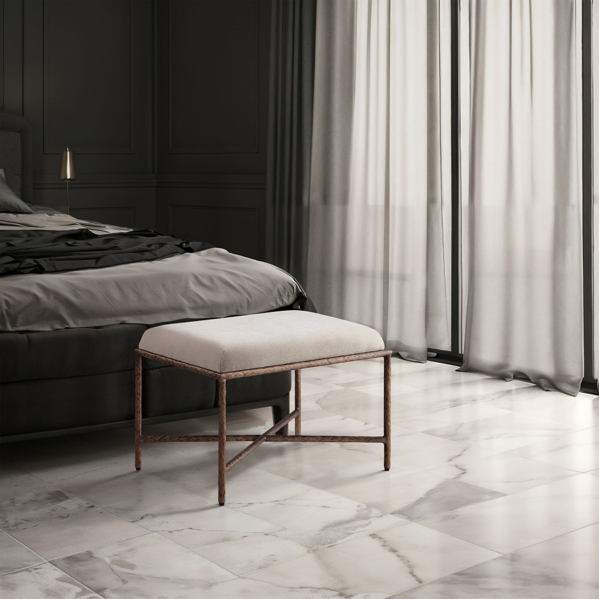 Valley - 25" Bench With Bronze Frame - Cream