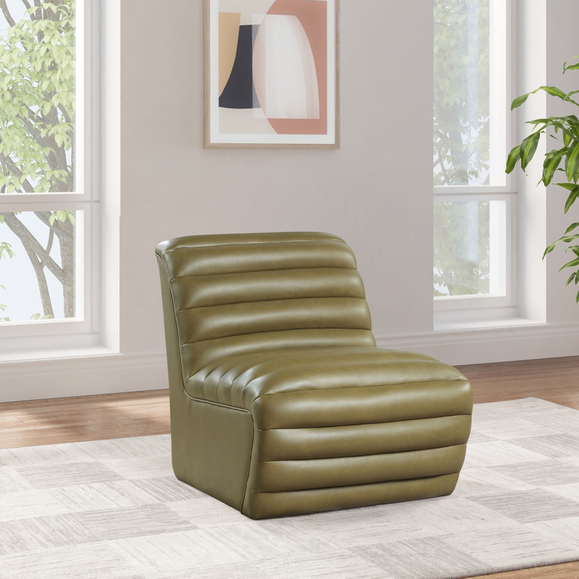 Indulge in a blend of sophistication and comfort with the Vega vegan leather accent chair. Draped in velvety soft vegan leather, this chair features bold deep channel tufting that creates a dynamic visual contrast. Its contemporary design elevates your space and invites you to experience luxury in every curve. Perfect for making a statement in your living room, office, or lounge, it redefines modern elegance with its unique and captivating style.