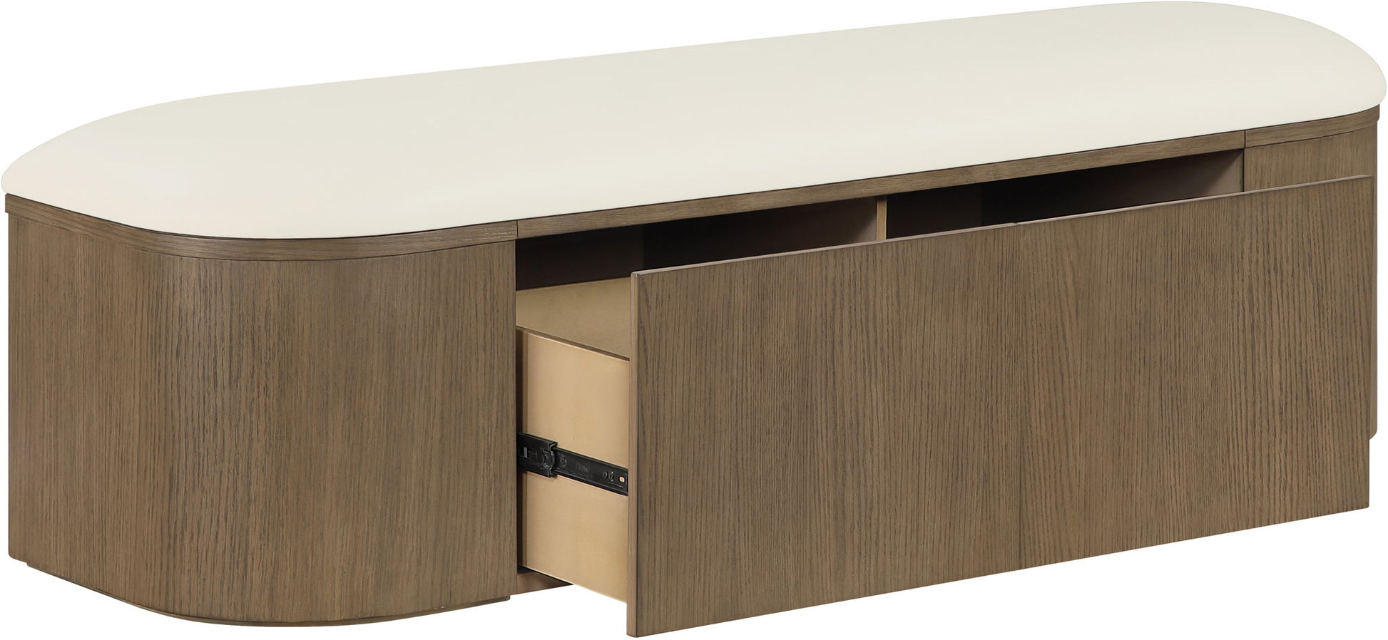 Velden - Vegan Leather Upholstered Storage Bench - Cream / Stained Brown