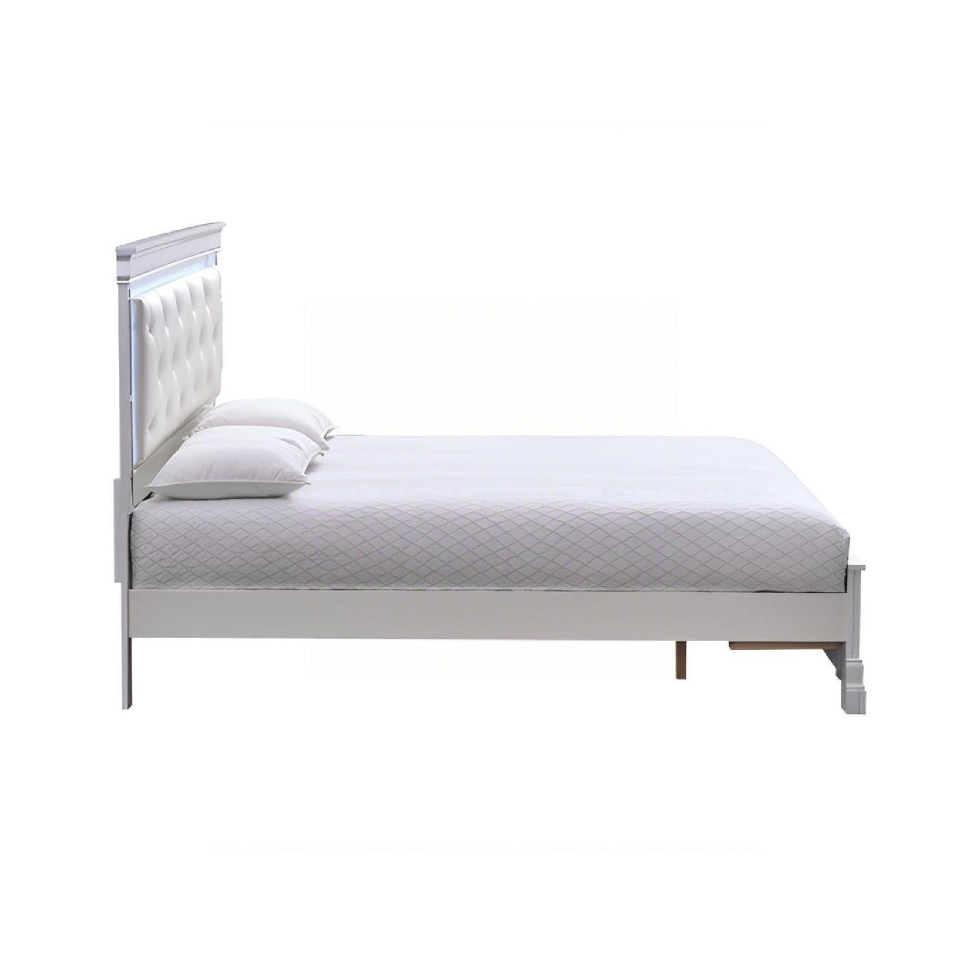 Verona - King Bed With Jeweled Tufted Upholstered Headboard And LED Accent Lighting - White