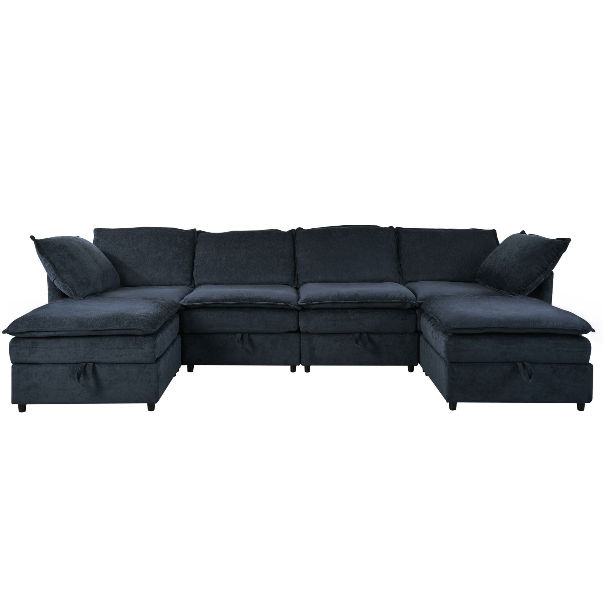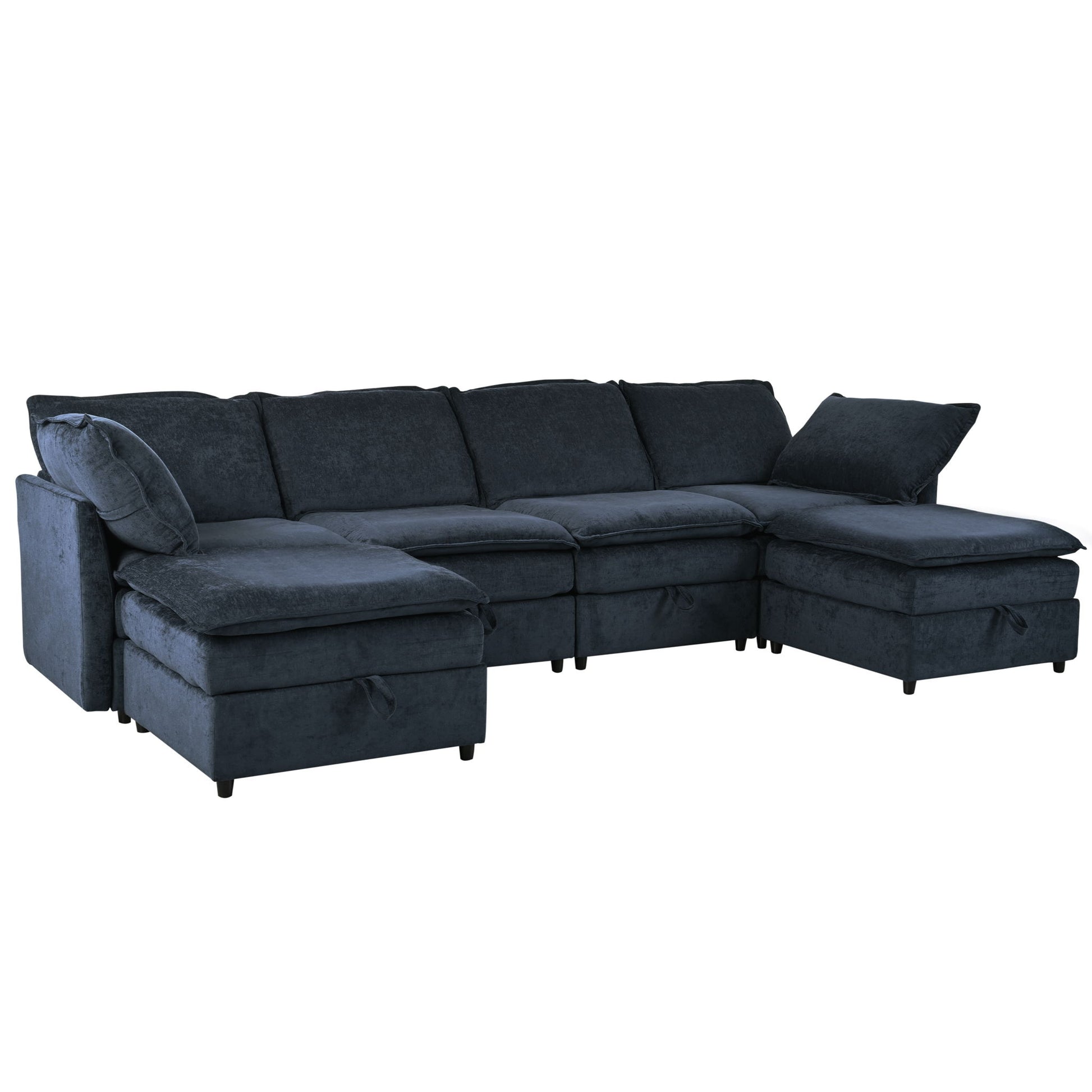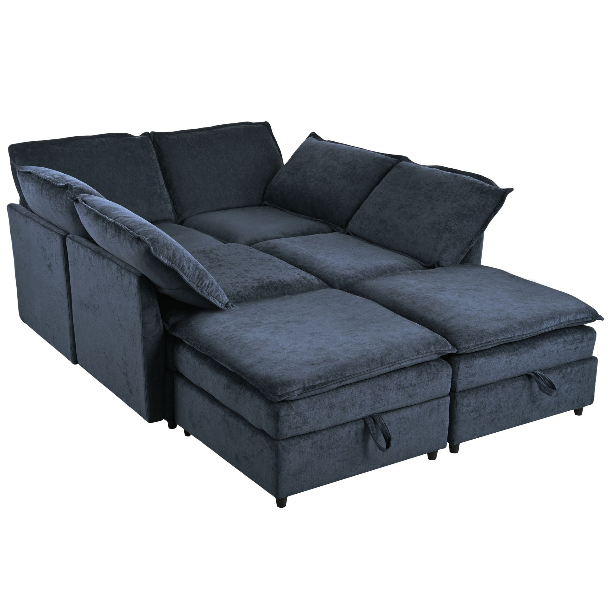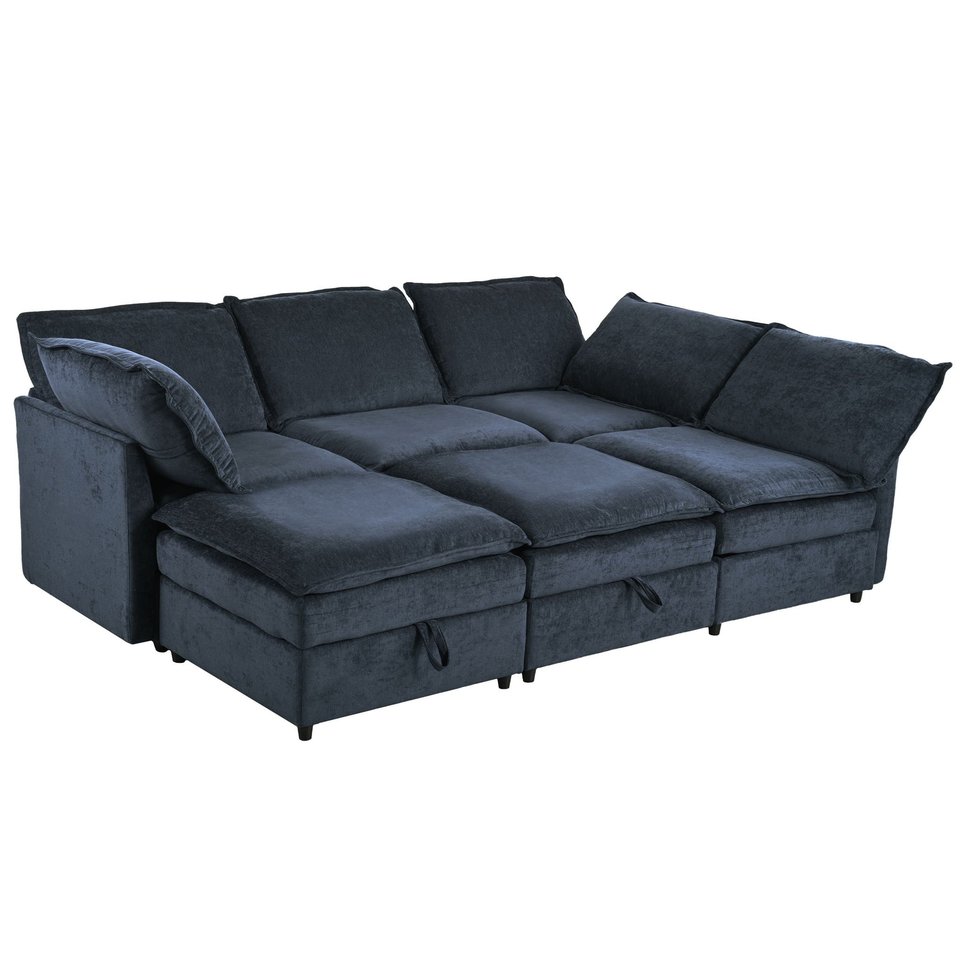 Versatile 6 Piece Modular Sofa Bed With Storage, Stylish Faux Double Layer Cushions, Comfortable & Durable Design, Perfect For Any Living Space - Dark Blue