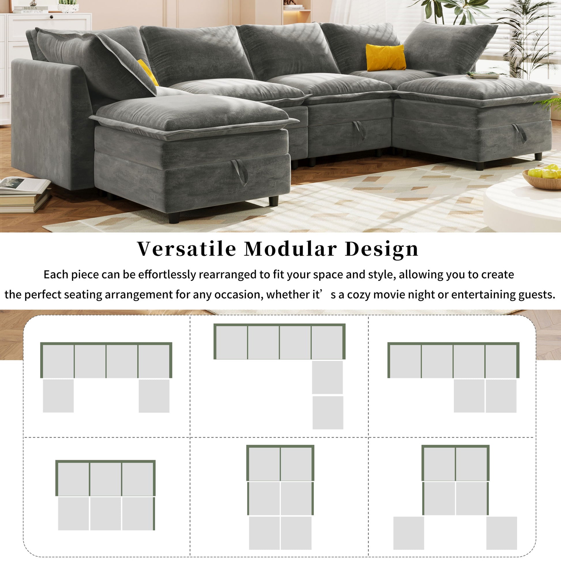 Versatile 6 Piece Modular Sofa Bed With Storage, Stylish Faux Double Layer Cushions, Comfortable & Durable Design, Perfect For Any Living Space - Gray