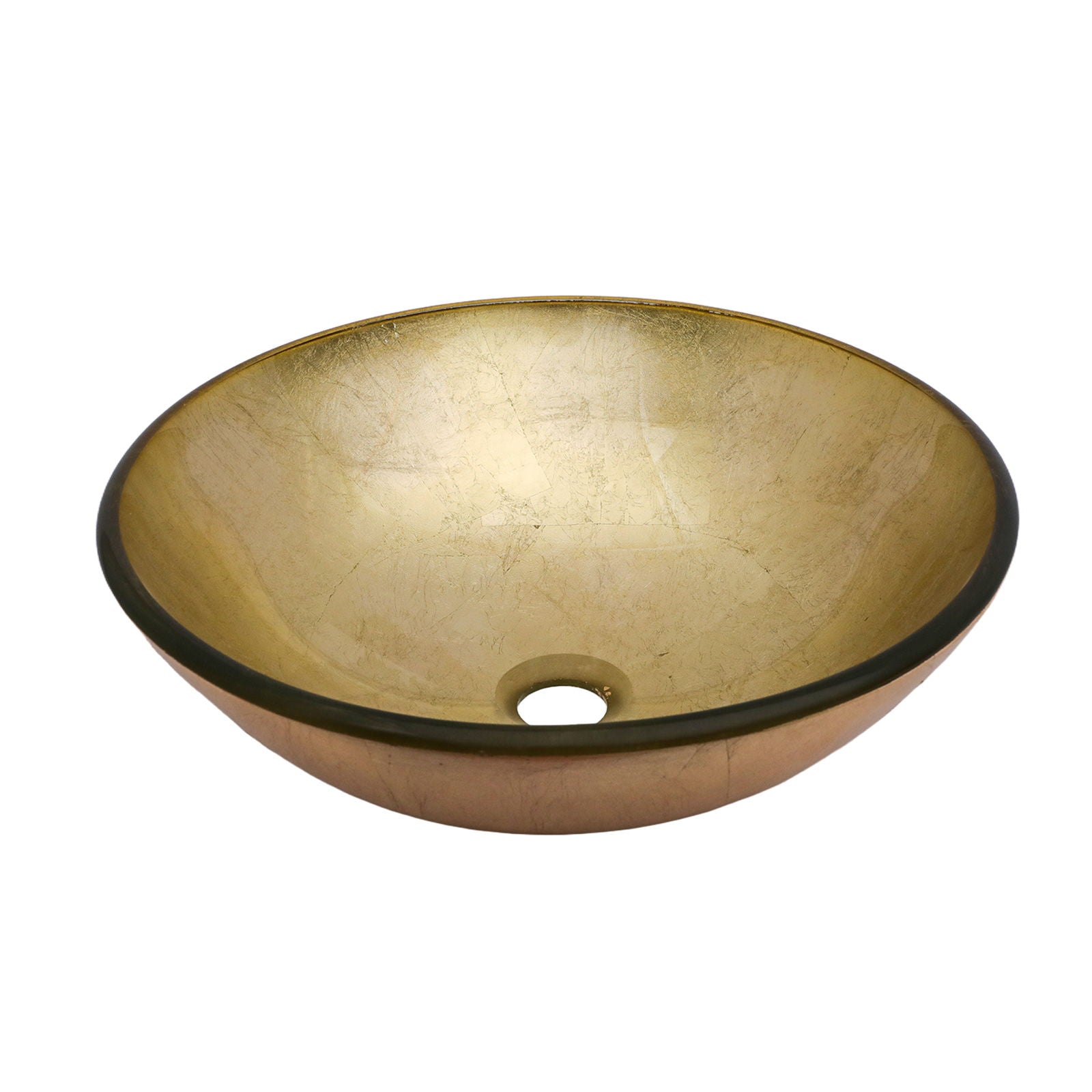 Textured Vessel Sink With Faucet And Pop Up Drain, Round Bowl For Bathroom Vanity - Gold