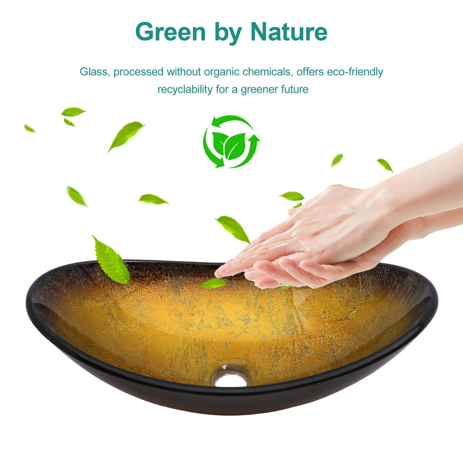 Vessel Sink With Pop Up Drain, Boat Shape Above Counter Bathroom Sink - Gold