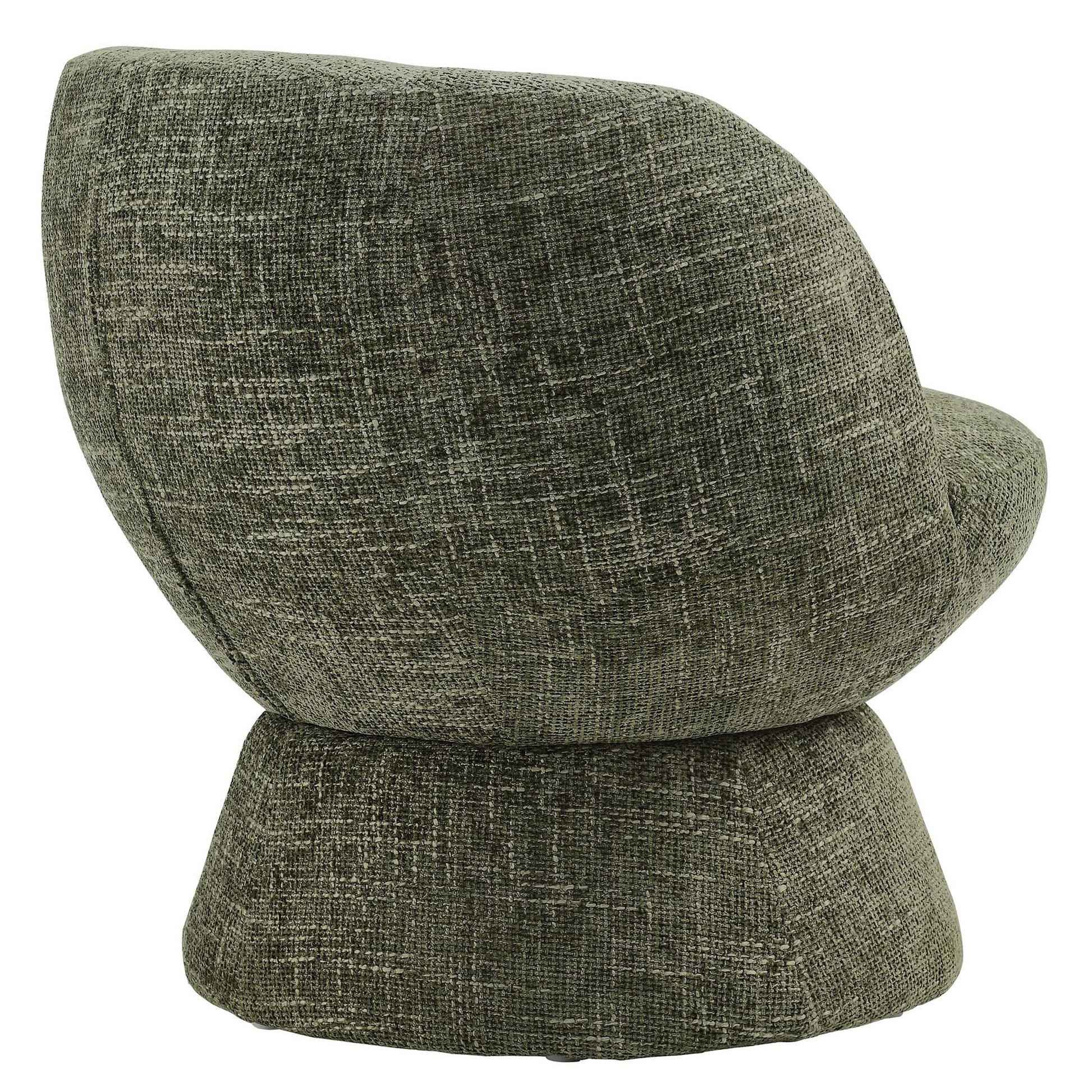 Elevate your living space with the Vesta Swivel Chair, where modern style meets unparalleled comfort. Wrapped in textured chenille fabric, this swivel barrel chair features a unique round silhouette with a distinctive seam up the back, adding a touch of elegance and visual interest. The 360-degree swivel mechanism grants full-range motion, to suit the needs of any moment. Dense foam padding and a sinuous spring support system offer a supportive and comfortable seat, while the sturdy wooden frame offers lasting durability. Resting atop non-marking floor glides, this round swivel chair protects your flooring while providing a stable, cozy seat while relaxing, reading, or conversing. Perfect as a chenille swivel accent chair or a luxe teddy chair, the Vesta Upholstered Armchair blends functionality with a chic design to enhance any decor. Assembly required. Weight Capacity: 330 lbs.