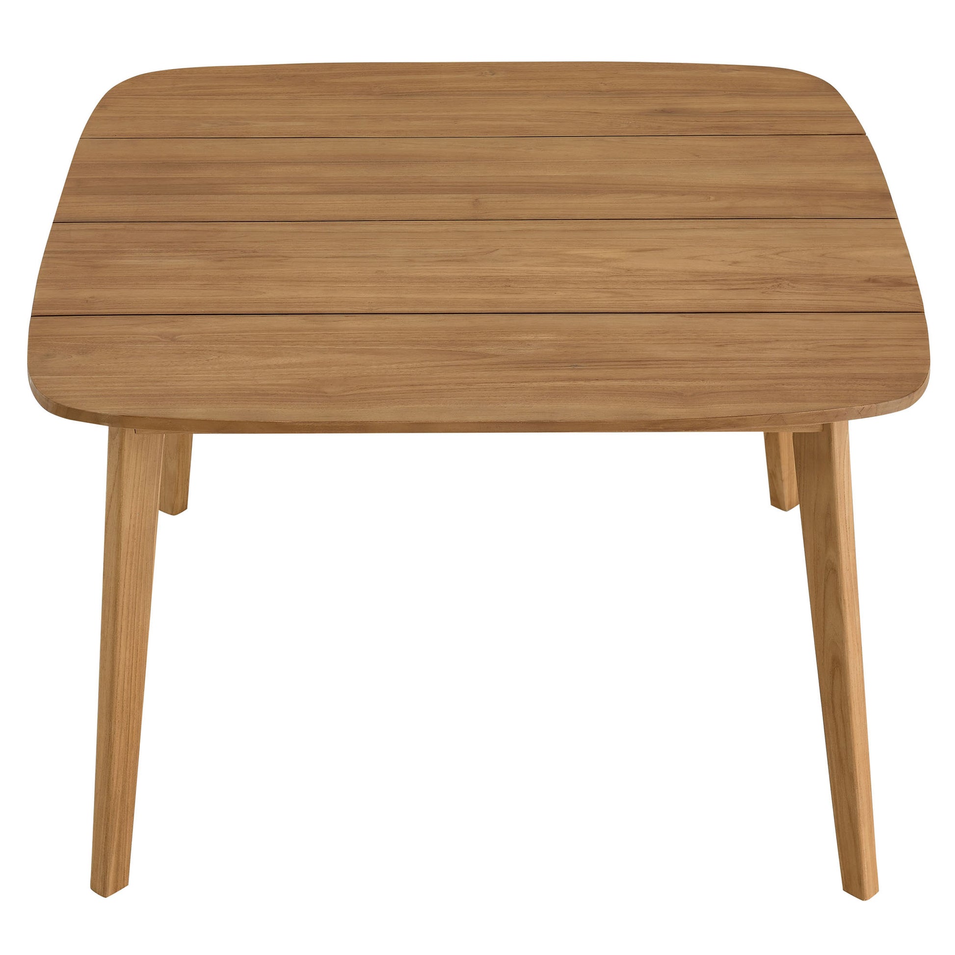 Refresh your outdoor dining experience with the Vienna Teak Wood Dining Table, an exquisite addition for everyday casual dining outside. This square outdoor dining table, crafted from beautiful teak wood that is naturally weather-resistant, features chic rounded corners that create a contemporary and cohesive look ideal for any patio or garden setting. Perfect for cozy meals and small get-togethers, this outdoor dining table comfortably seats 4 people. Standing on four solid wood legs, the 46-inch square Vienna Teak Patio Table provides stability and durability, creating a timeless focal point for your outdoor decor. Whether used as wood bistro table, an outdoor breakfast table, or paired with the complete Vienna Outdoor Teak Wood Furniture Set, this square patio table complements a diverse range of outdoor patios. Assembly Required.