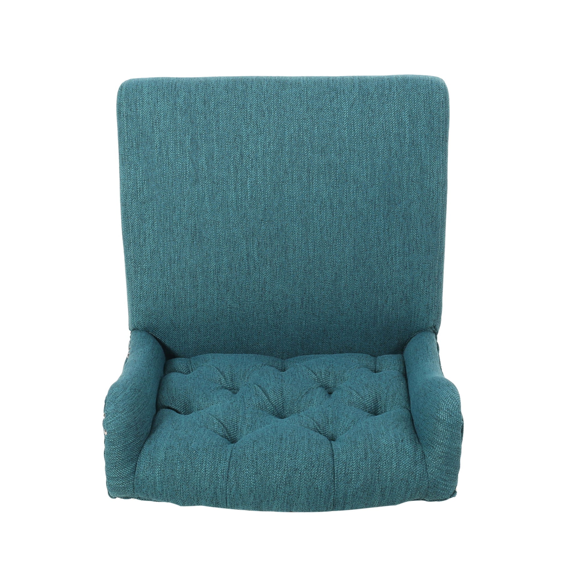 Vienna - Contemporary Fabric Tufted Wingback Counter Stools, (Set of 2) - Teal / Dark Brown