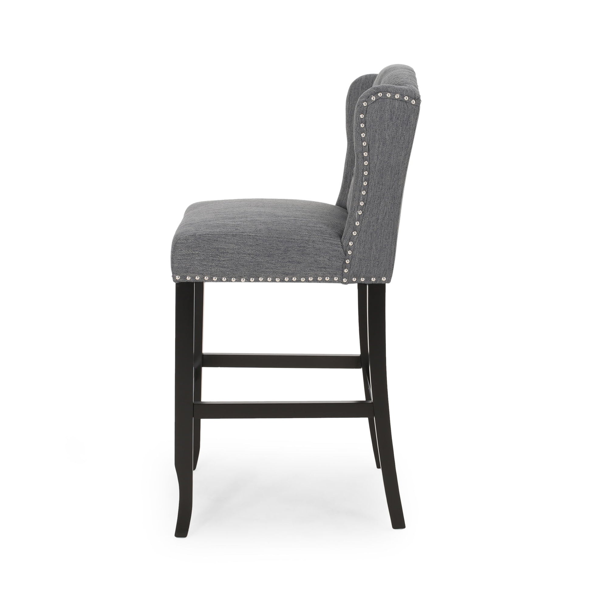 Solara - Fabric Tufted Counter Stool With Nailhead Accents (Set of 2) - Charcoal