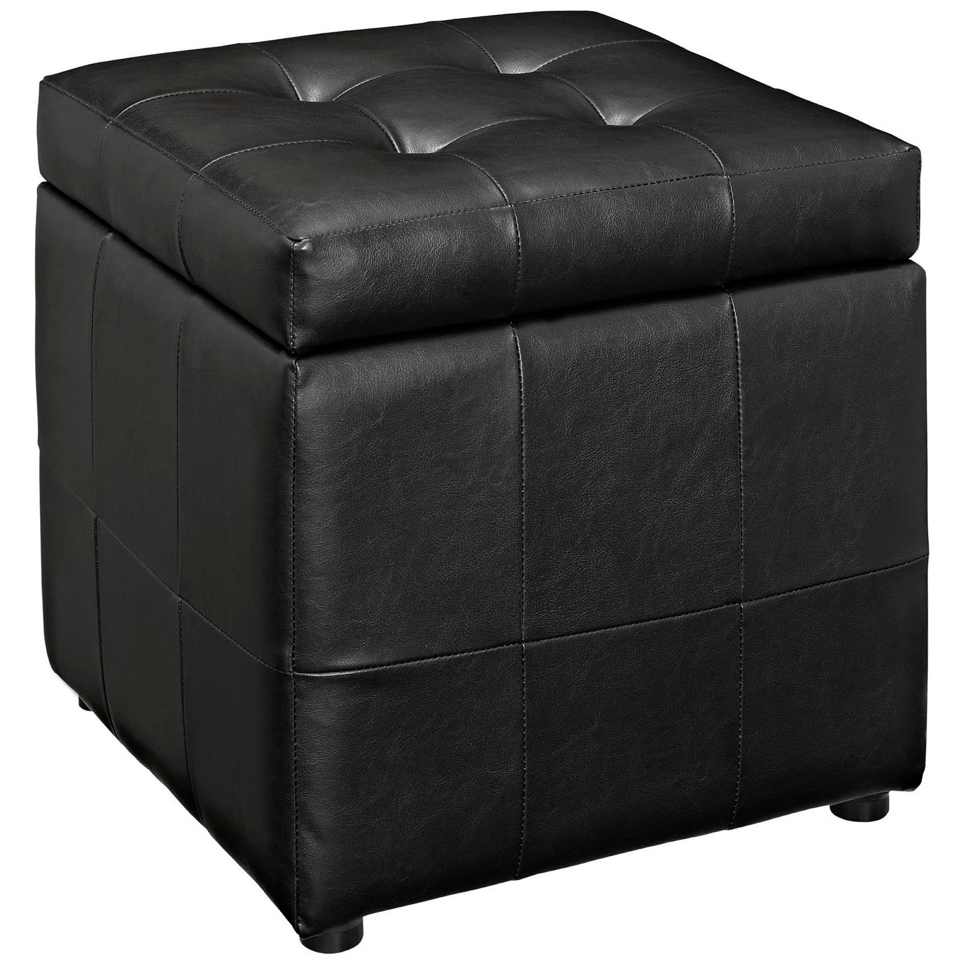 The square shape evokes feelings of security and reliance in this compact accent ottoman you can count on. The Volt Button Tufted Faux Leather Upholstered Storage Ottoman stands ready as a footrest, while the lined storage compartment works great for both regular uses, and for a swift run-through before last-minute visitors. Dense foam padding and a solidly constructed wood frame are covered by soft and durable faux leather upholstery, while button tufting details give Volt a contrasting visual depth designed to please. Volt Faux Leather Upholstered Storage Ottoman features a boxy design that creates a dashing addition to your agile decor, making it perfect for your living room, lounge room, bedroom, or other seating areas.