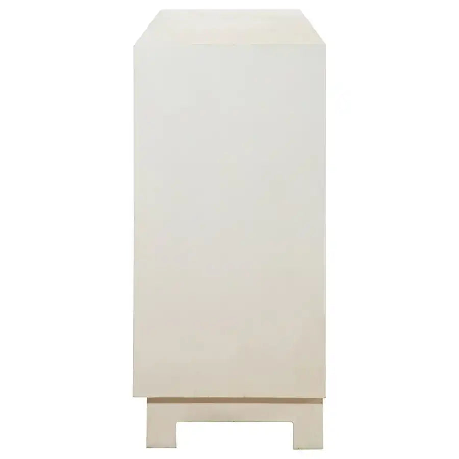 Elevate your space with bold Art Deco flair using this striking accent cabinet. Featuring a Greek key pattern across its four doors, this piece blends timeless design with modern charm. A tri-tone palette of white, gold, and silver adds sophistication, while three interior shelves provide practical storage. Crafted from wood and MDF, this cabinet is perfect for entryways, living rooms, or dining areas.