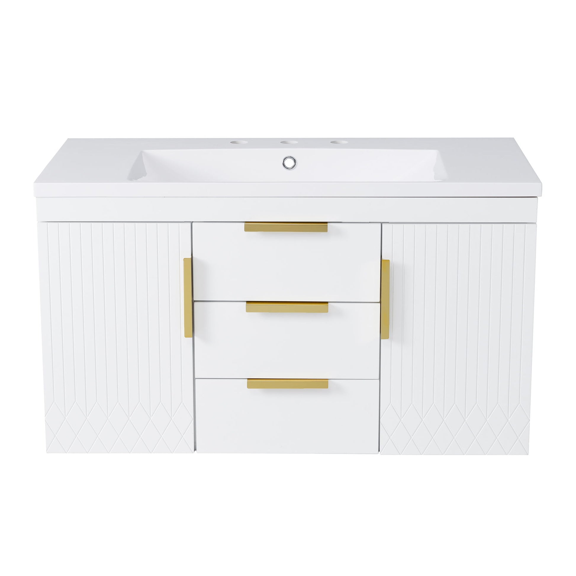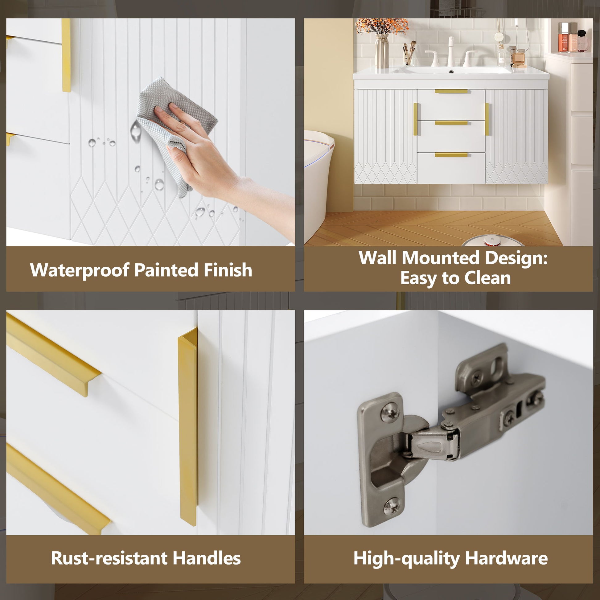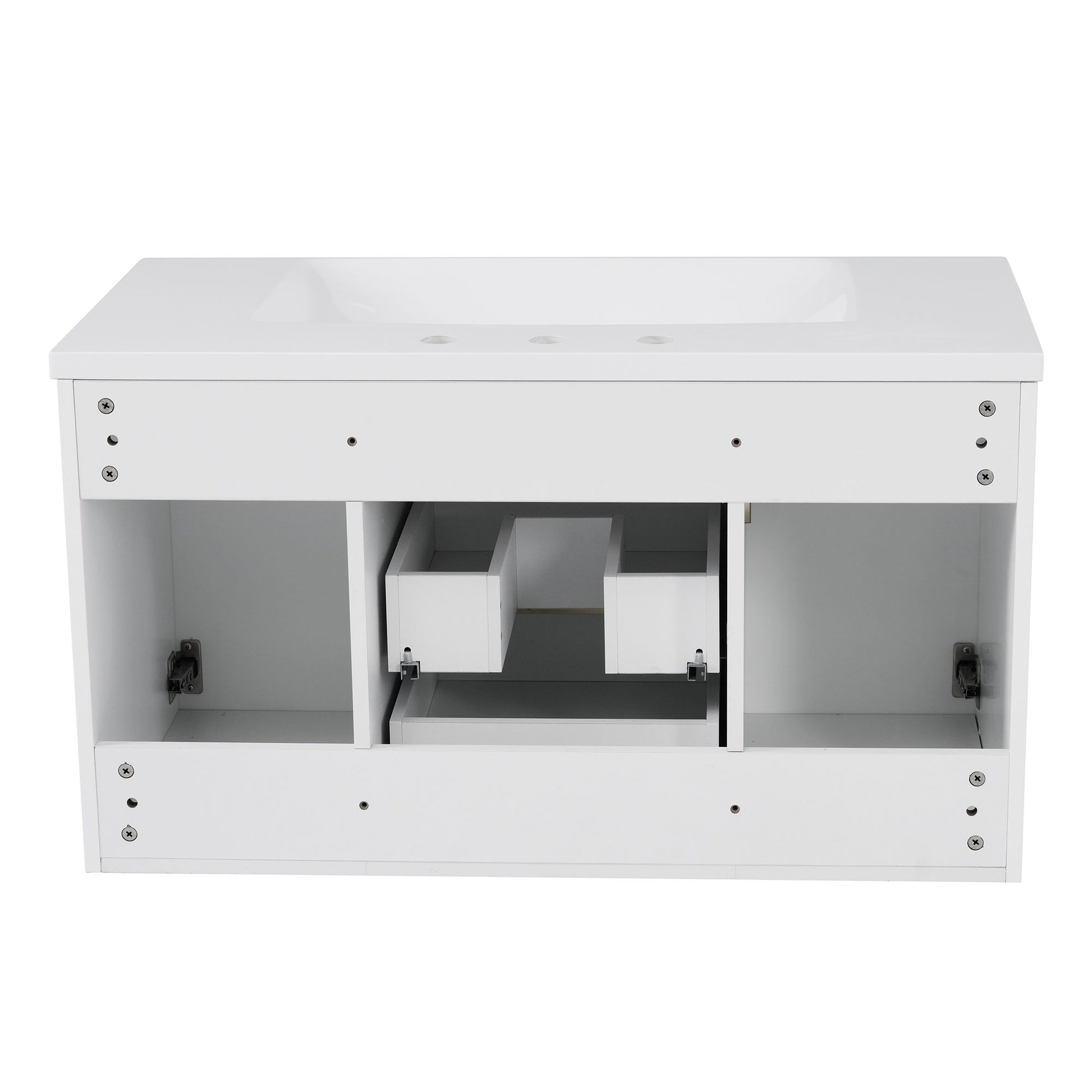 36" Wall Mounted Bathroom Vanity With Sink, Floating Storage Cabinet With 2 Drawers - White