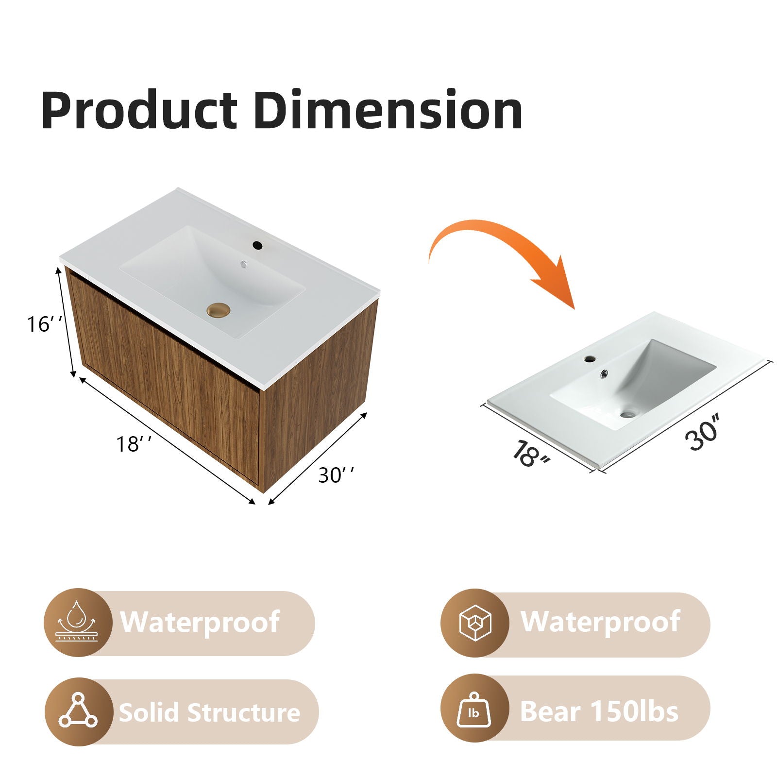 Wall Mounted Floating Bathroom Vanity Cabinet With Sink And Drawers - Walnut