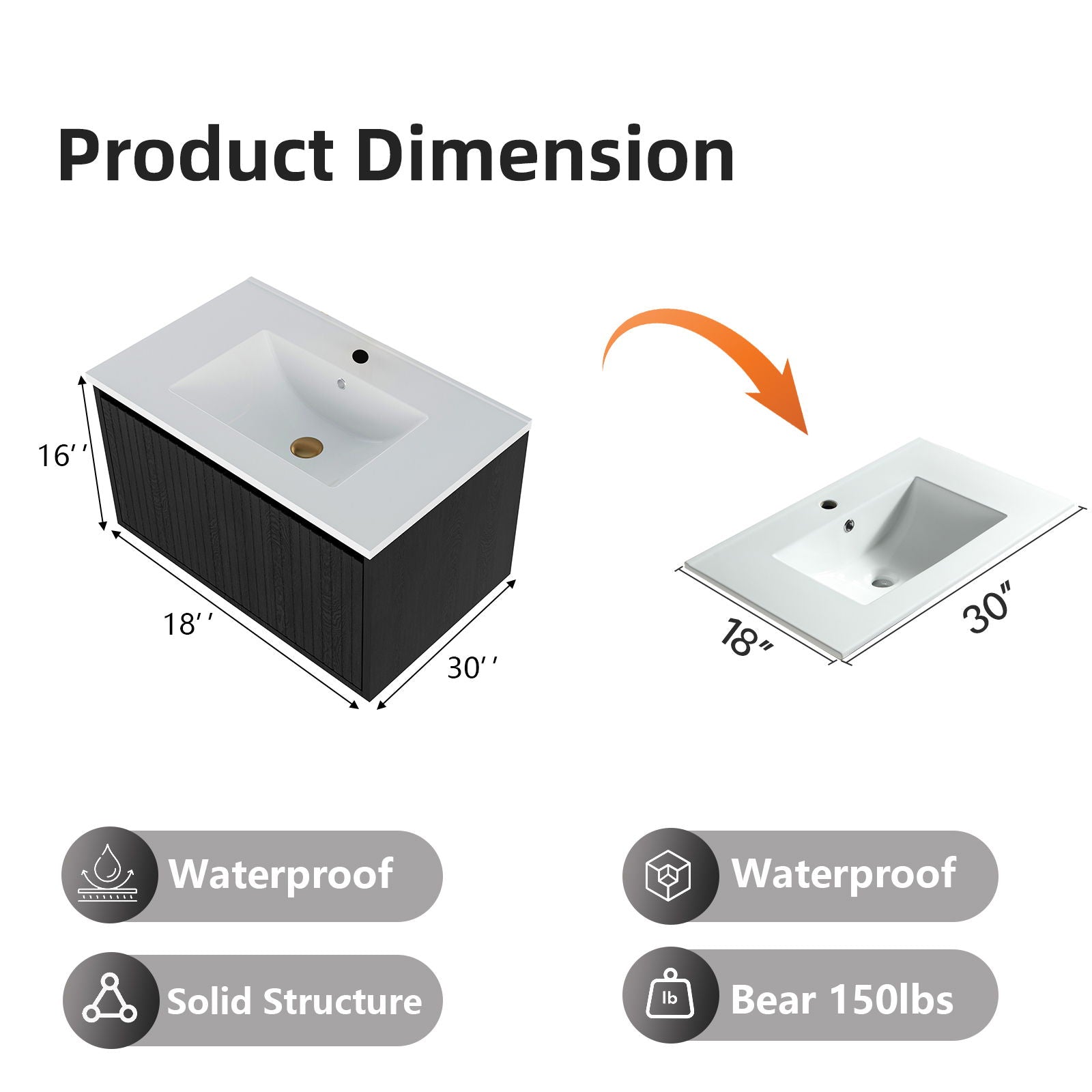 Wall Mounted Floating Bathroom Vanity Cabinet With Sink And Drawers - Black