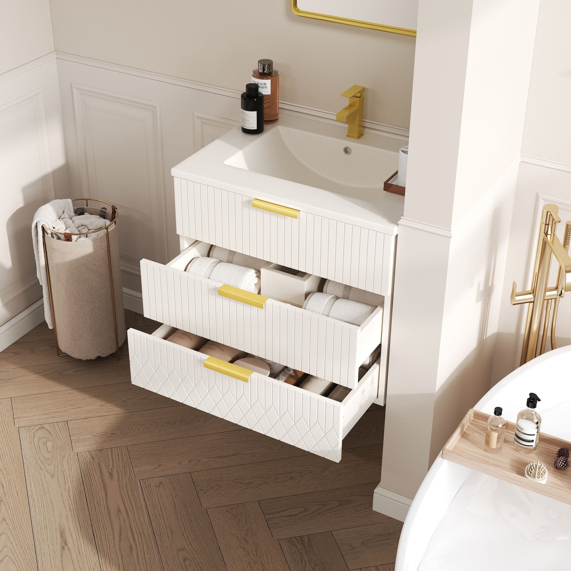 - Space-Saving Floating Design: Wall-mounted construction maximizes floor space and creates a light, airy feel in small bathrooms.