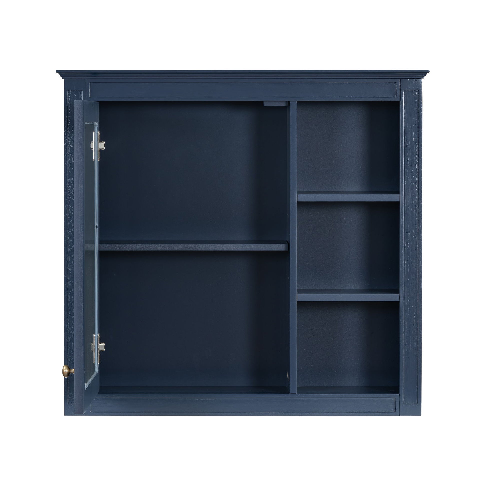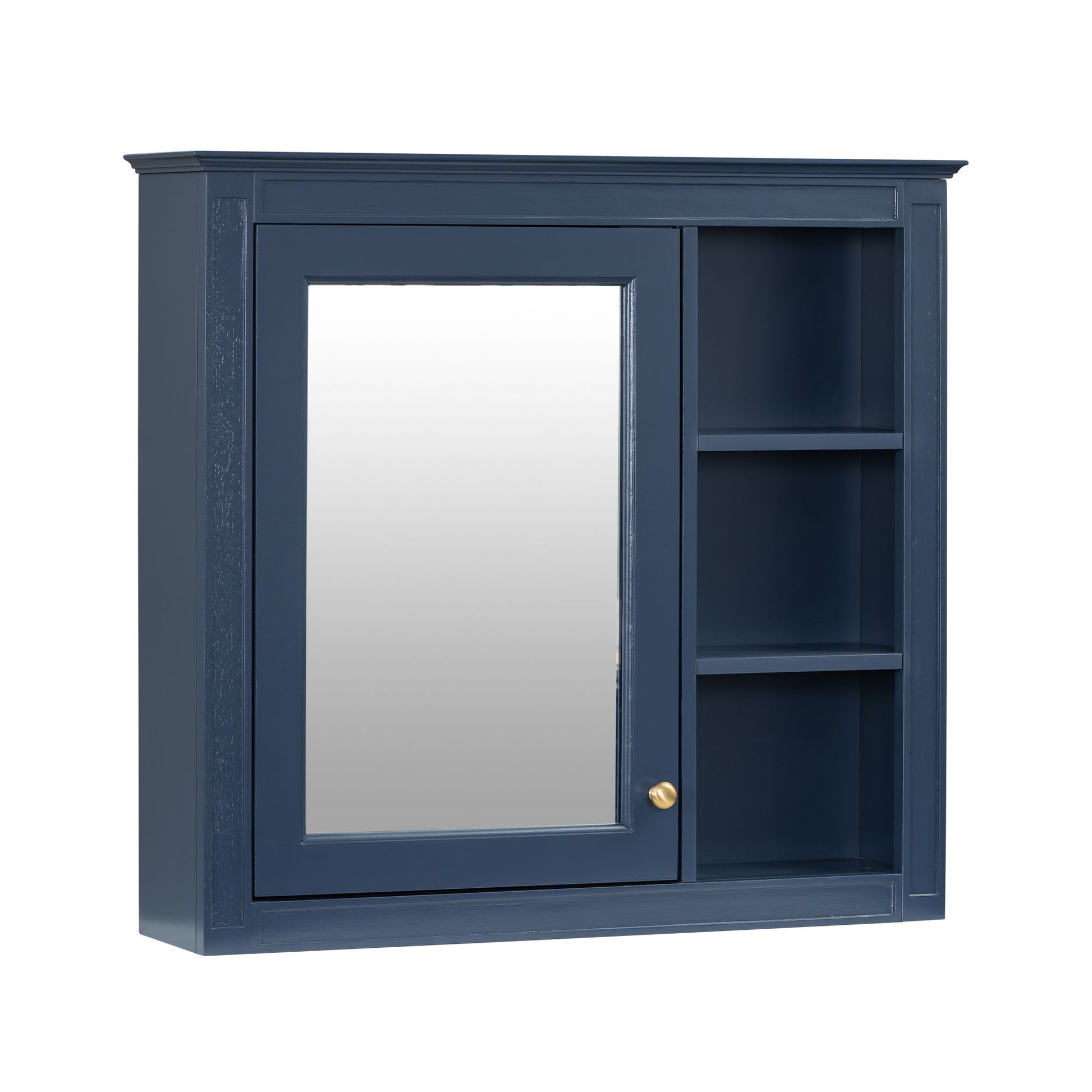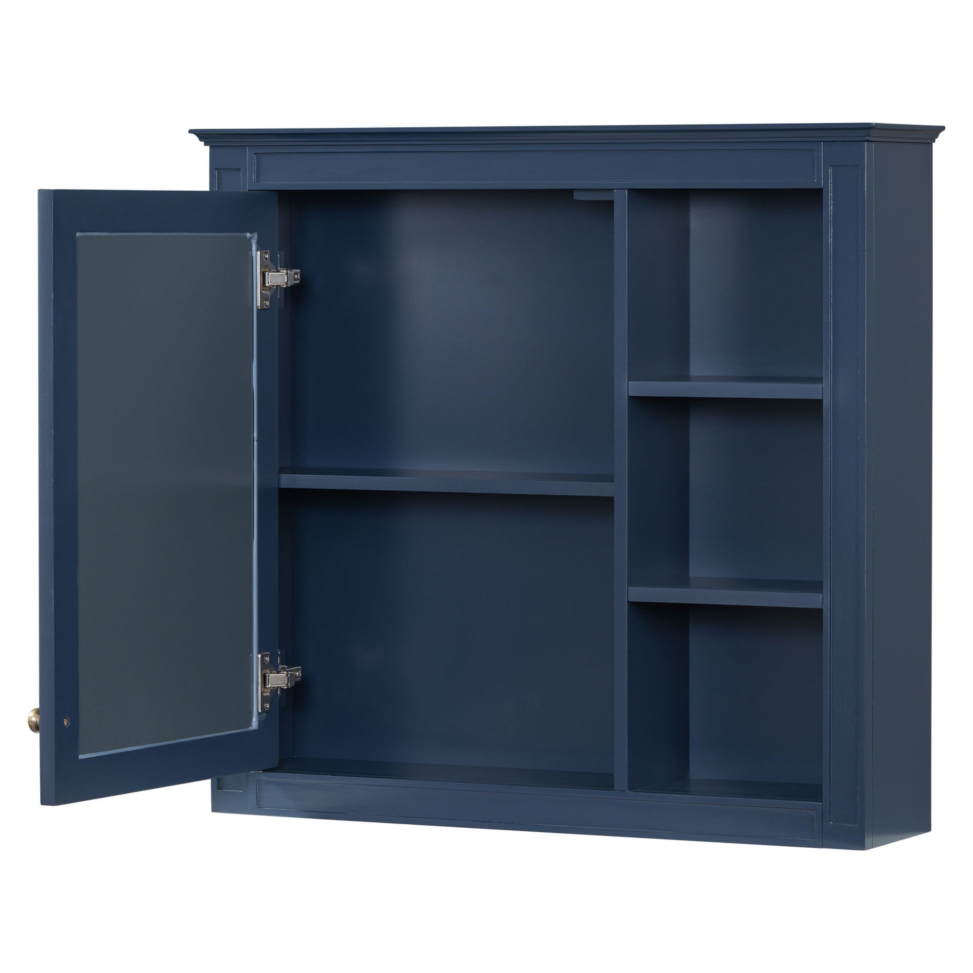 Wall Mounted Medicine Cabinet With Mirror And 3 Open Shelves, Storage Cabinet - Blue