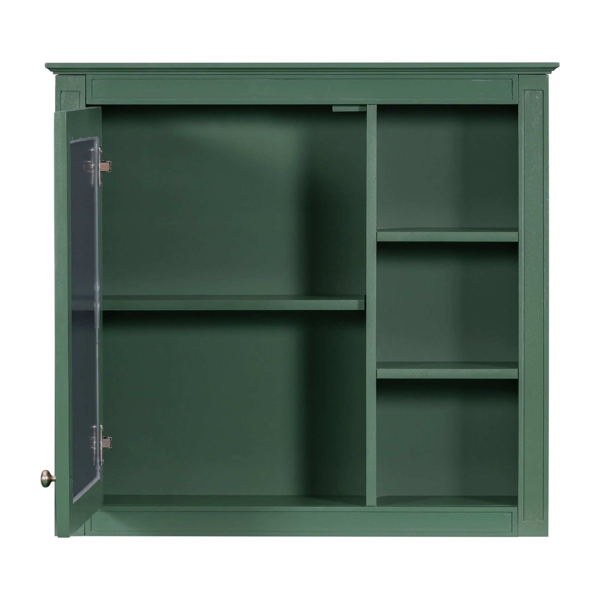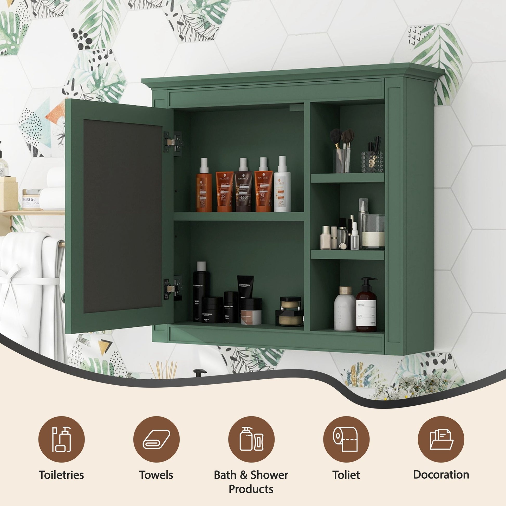 Wall Mounted Medicine Cabinet With Mirror And 3 Open Shelves, Storage Cabinet - Green