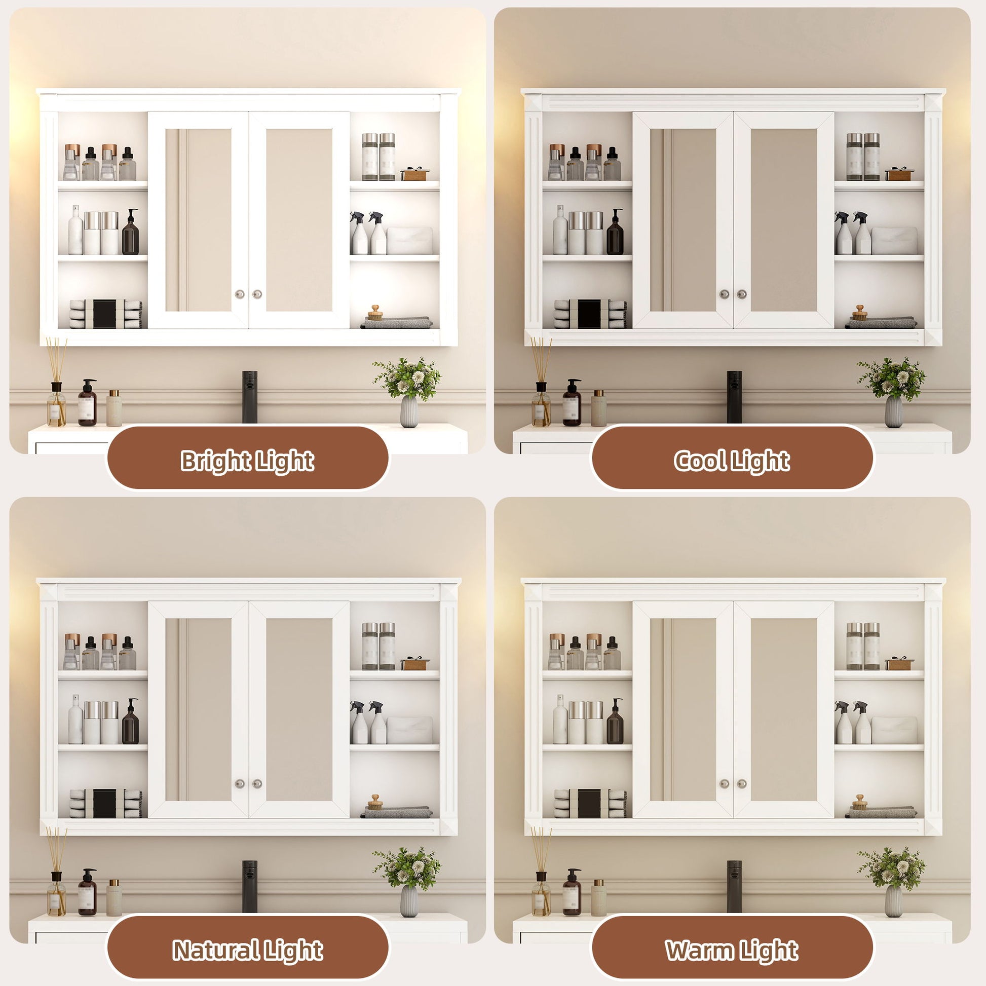 Wall-Mounted Mirror Cabinet With Adjustable Shelf And Open Shelves - White