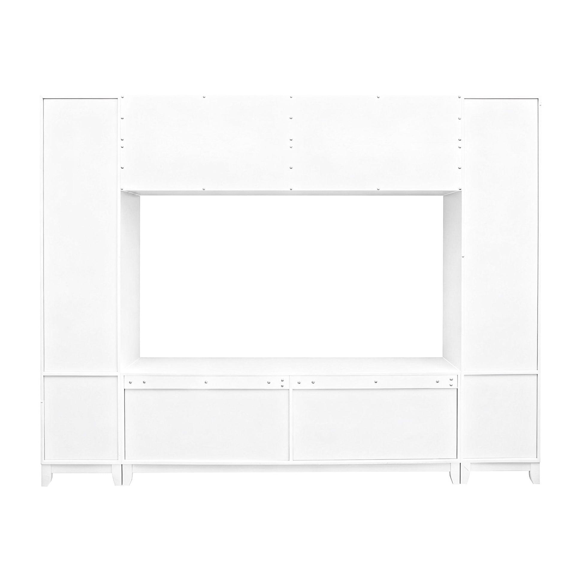 Wall Unit Entertainment Center With Glass Doors For TVs Up To 75" With Drawers For Living Room - White