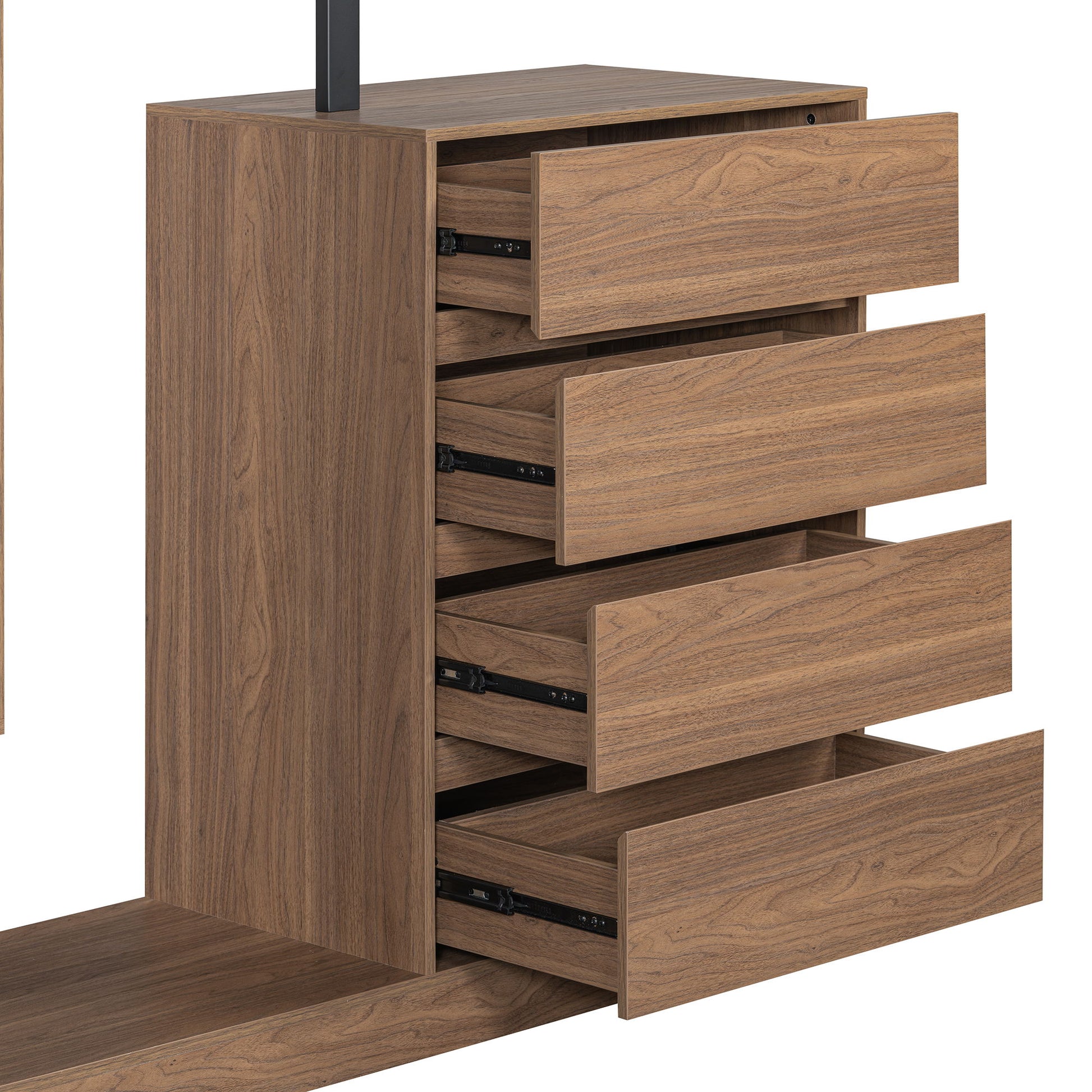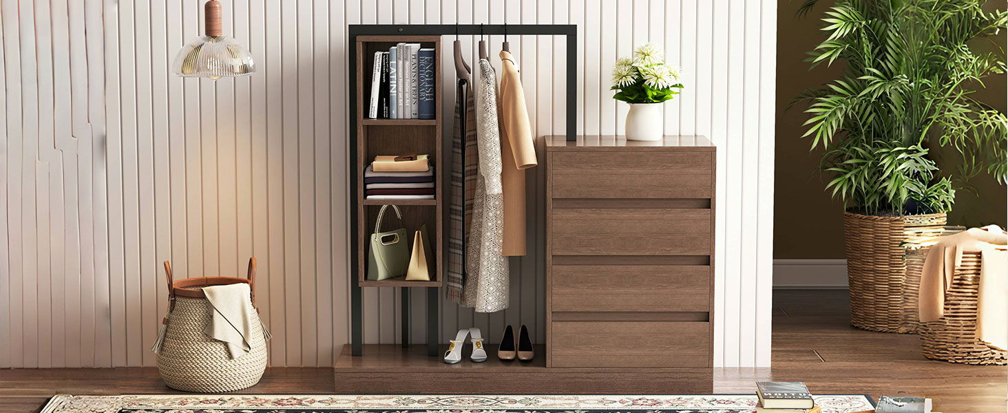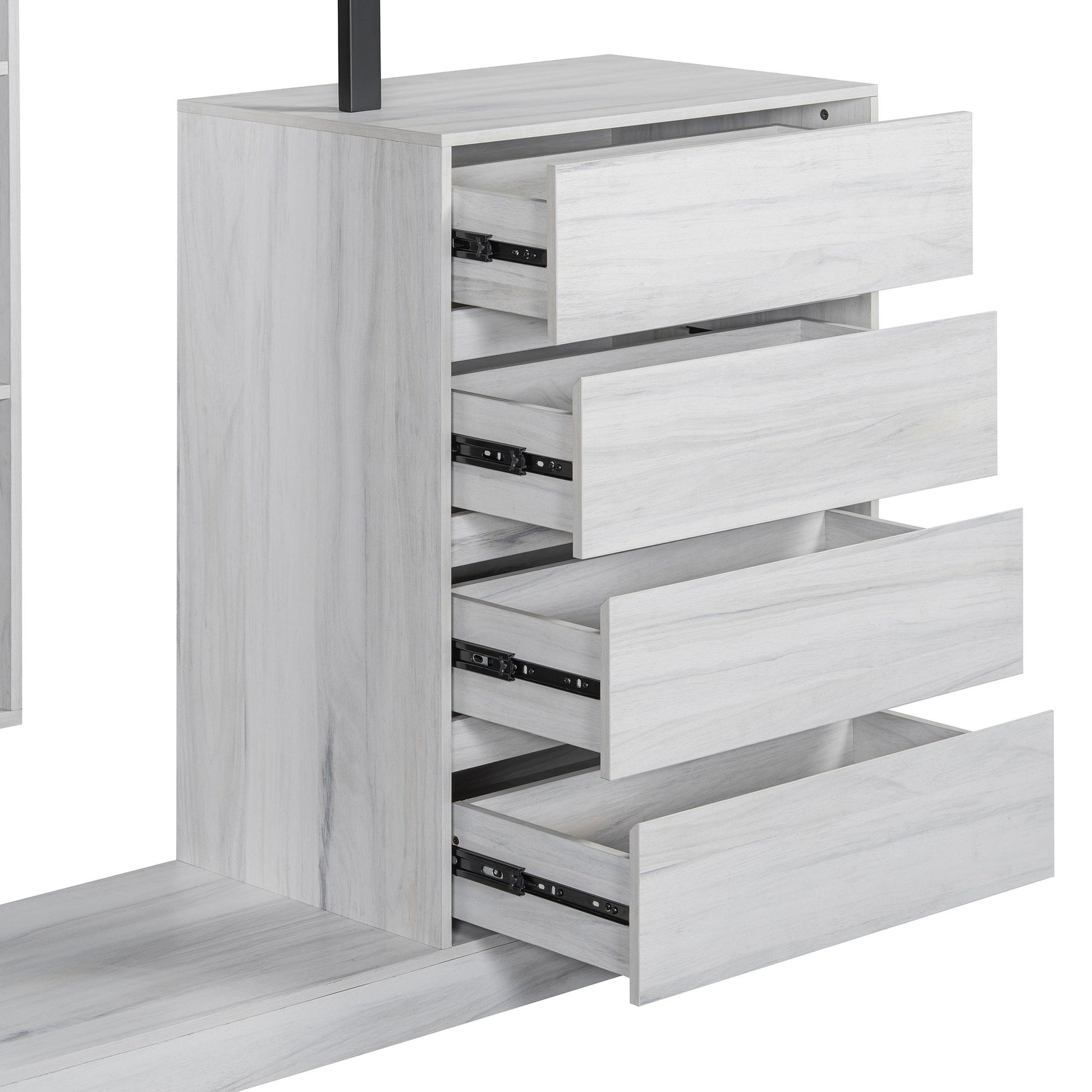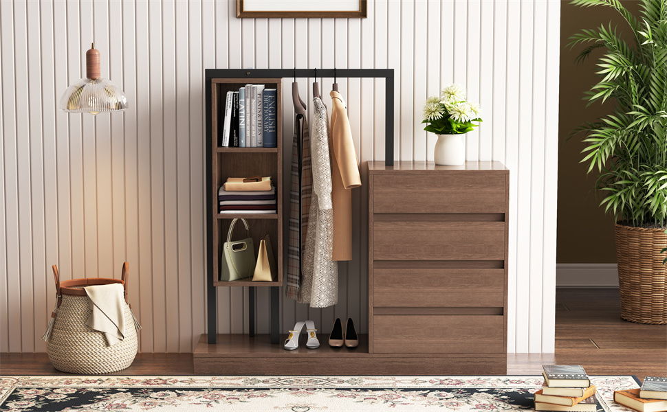 Spacious Storage: Featuring four generous drawers and additional cabinets, this wardrobe provides ample space for all your belongings, from clothes to shoes.