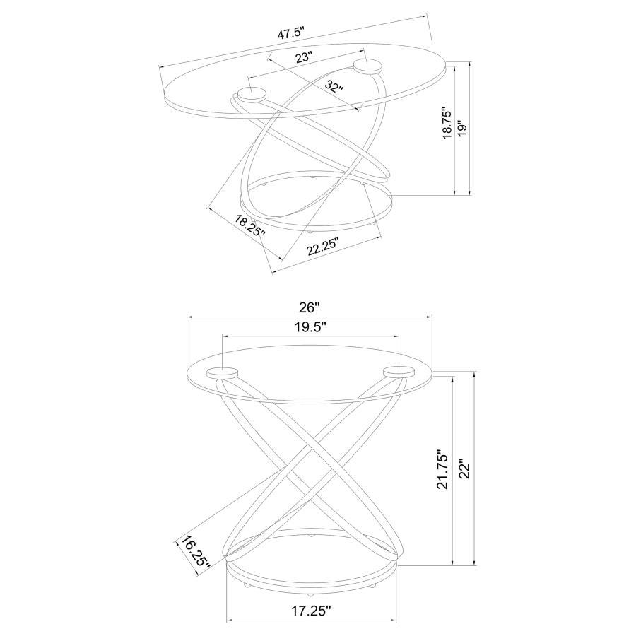 Warren - 3 Piece Oval Glass Top Coffee Table Set - Chrome