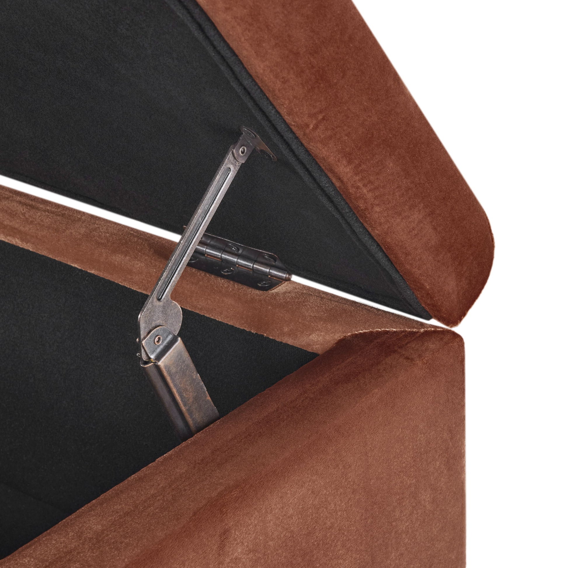 Wendover - Elegant Velvet Tufted Storage Bench With Lift Up Top And Birch Wood Legs - Burnt Orange
