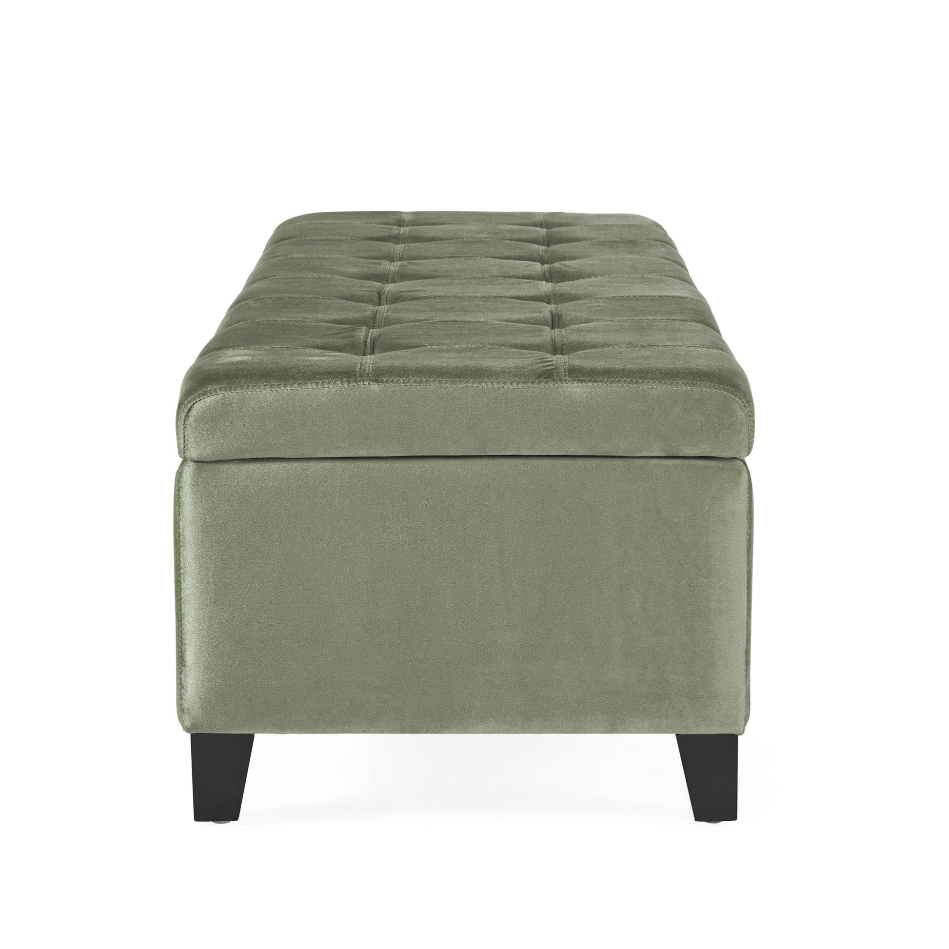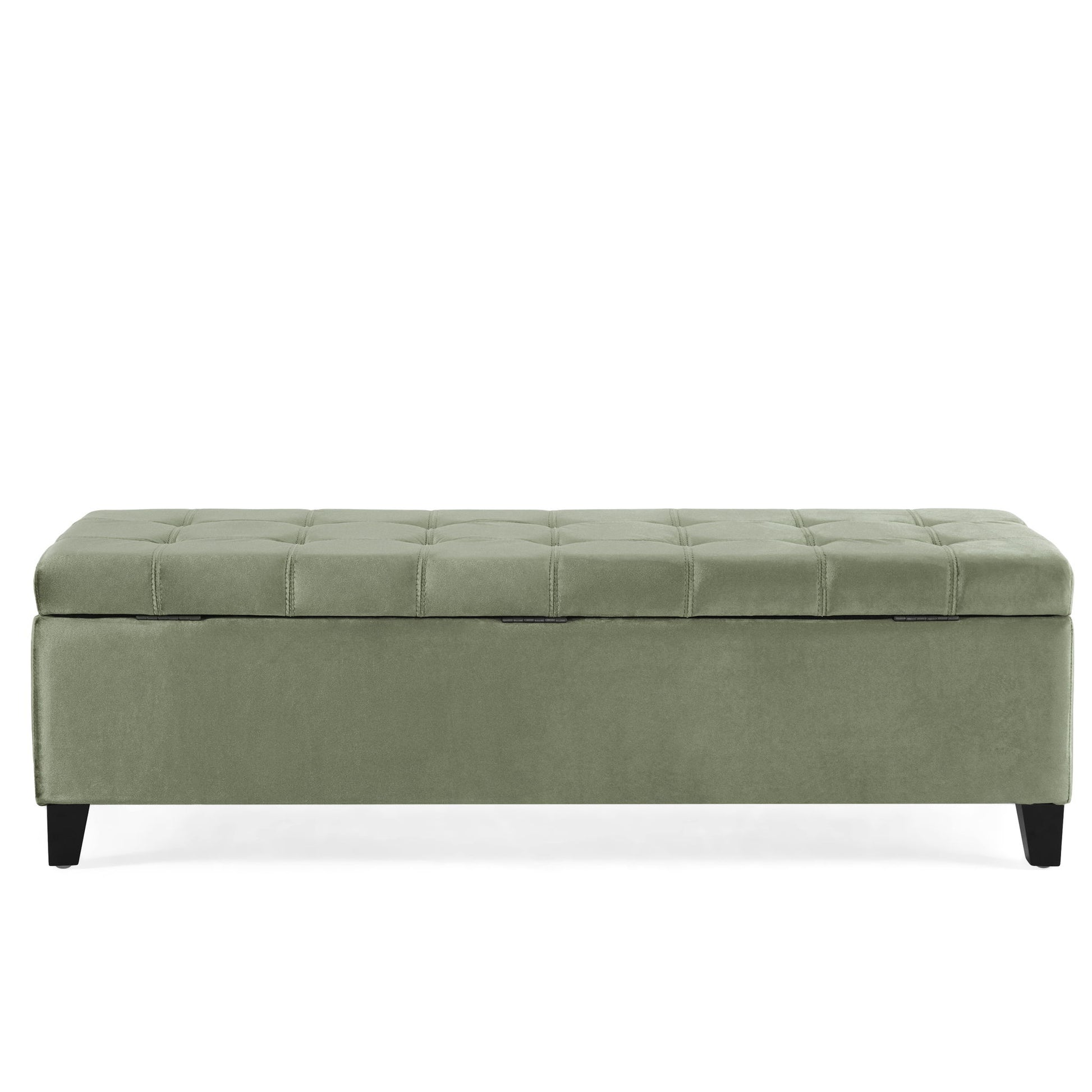 Wendover - Elegant Velvet Tufted Storage Bench With Lift Up Top And Birch Wood Legs - Pale Green