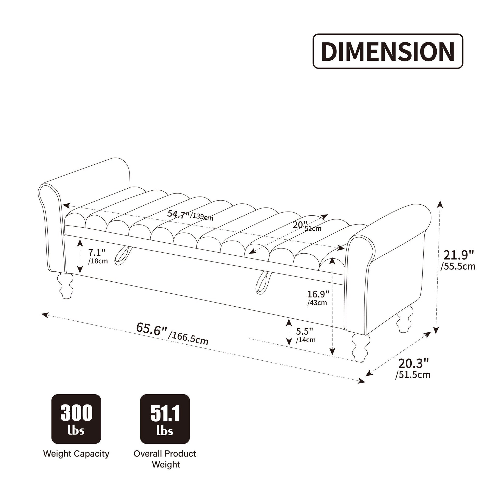 Wide Upholstered Storage Bench With Rolled Armrest For Bedroom - Griege
