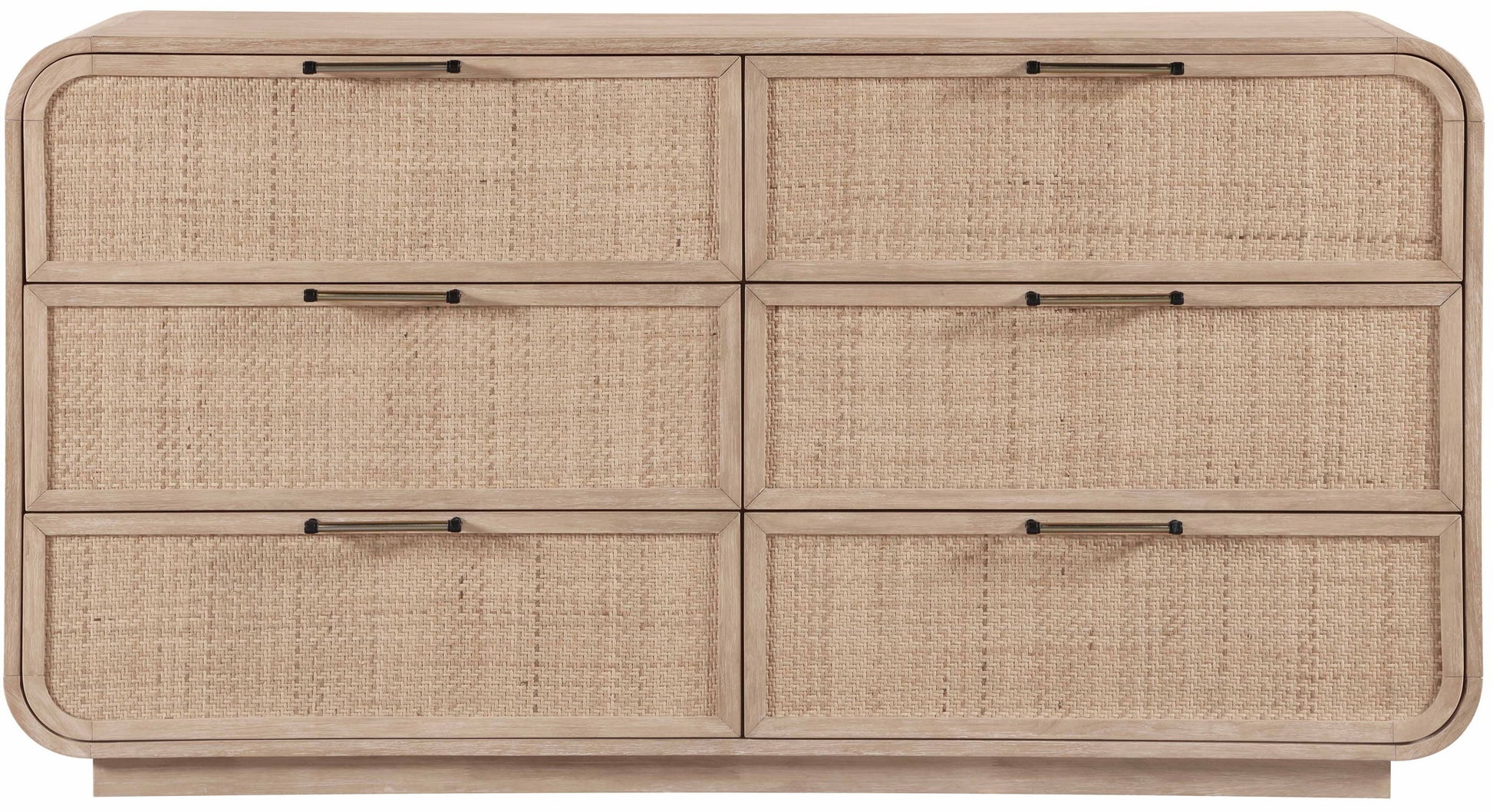 The Windsor dresser by Meridian Furniture brings a relaxed sophistication to the bedroom with its rich natural finish and airy cane accents. Crafted from solid wood, the design balances visual warmth with enduring quality, while softly rounded edges reference the timeless appeal of mid-century modern styling. The natural materials and gentle curves create a calming presence that feels both grounded and refined.