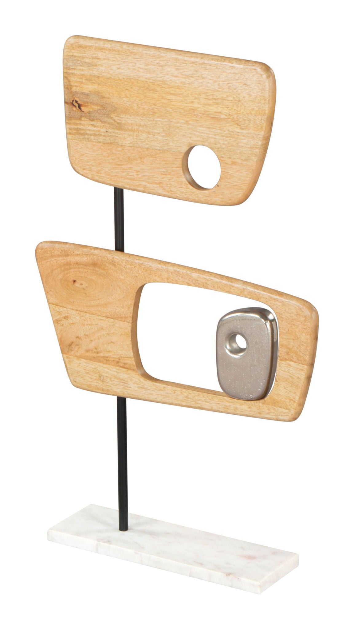 The Wize Table art has a cast aluminum body with a marble base.