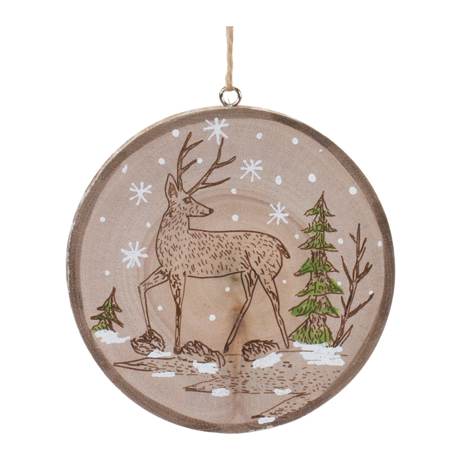 Wood Deer Tree Disc Ornament (Set of 12)