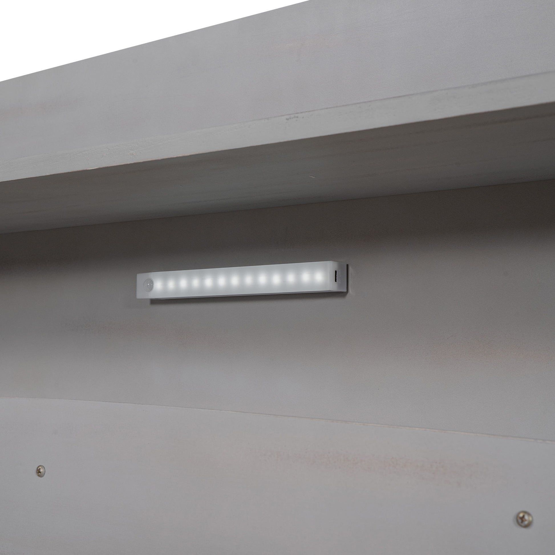 Twin Size Platform Bed With LED Light, Storage Headboard And Guardrail - Antique Gray