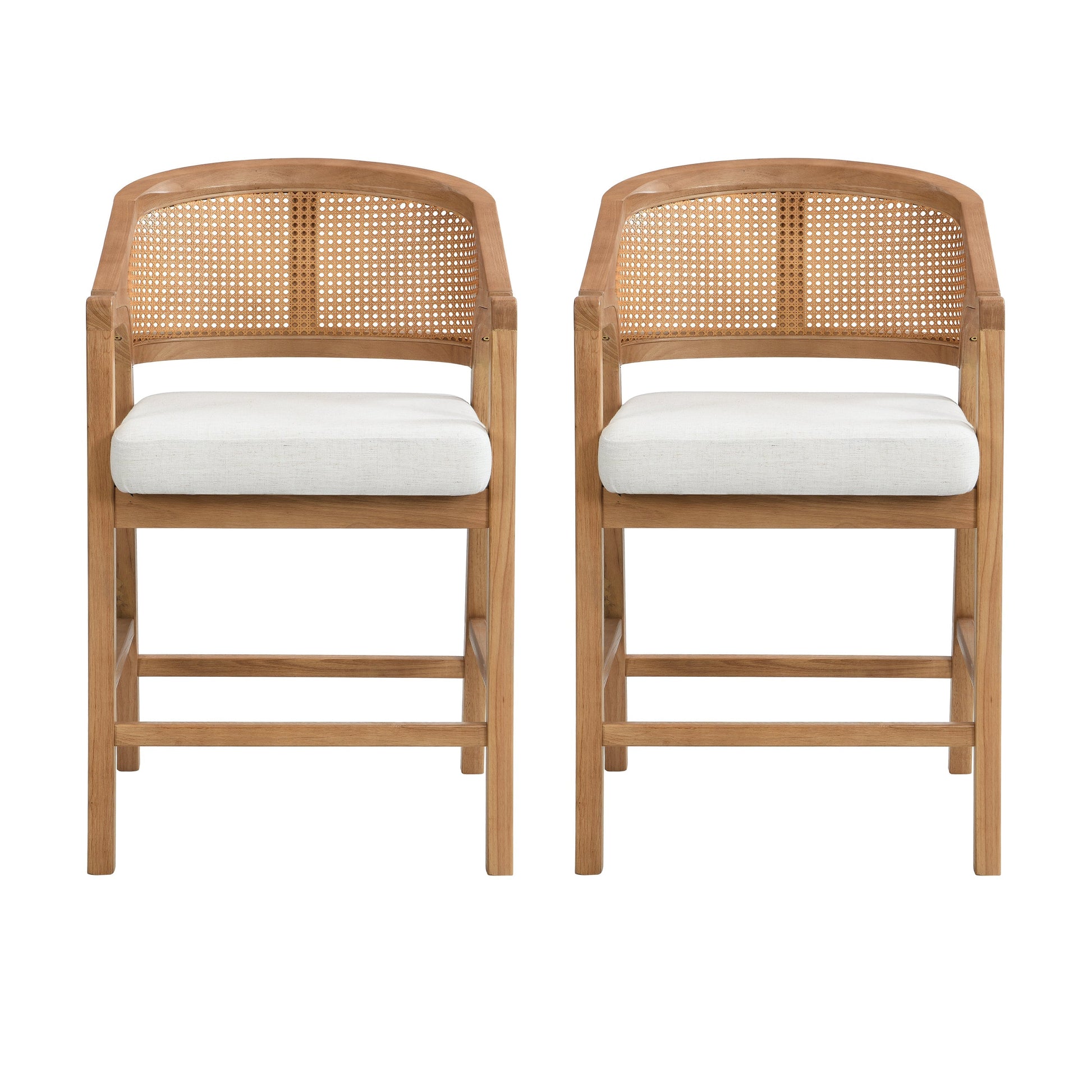 Wooden Frame Counter Stool with Rattan Back - Set of 2